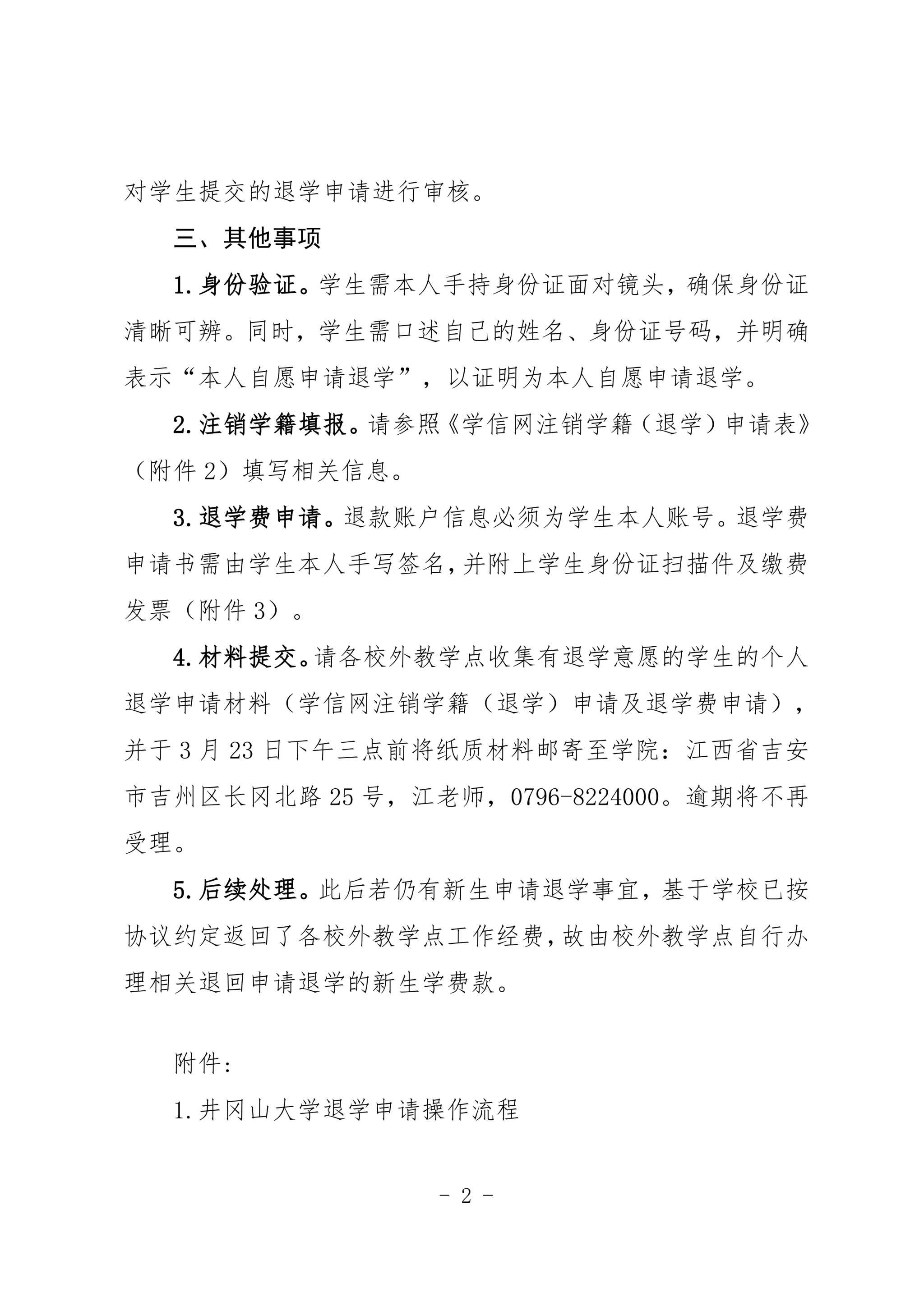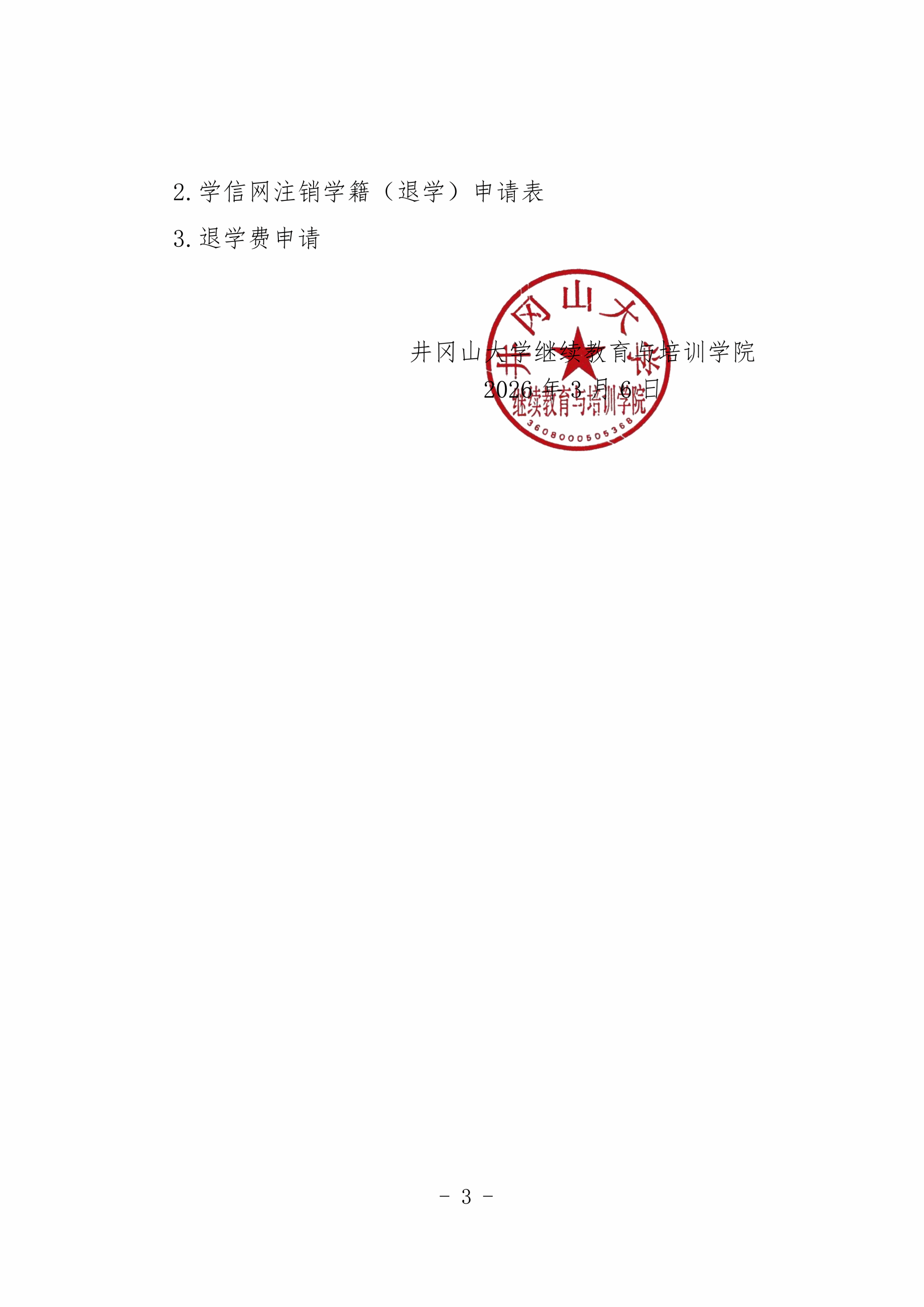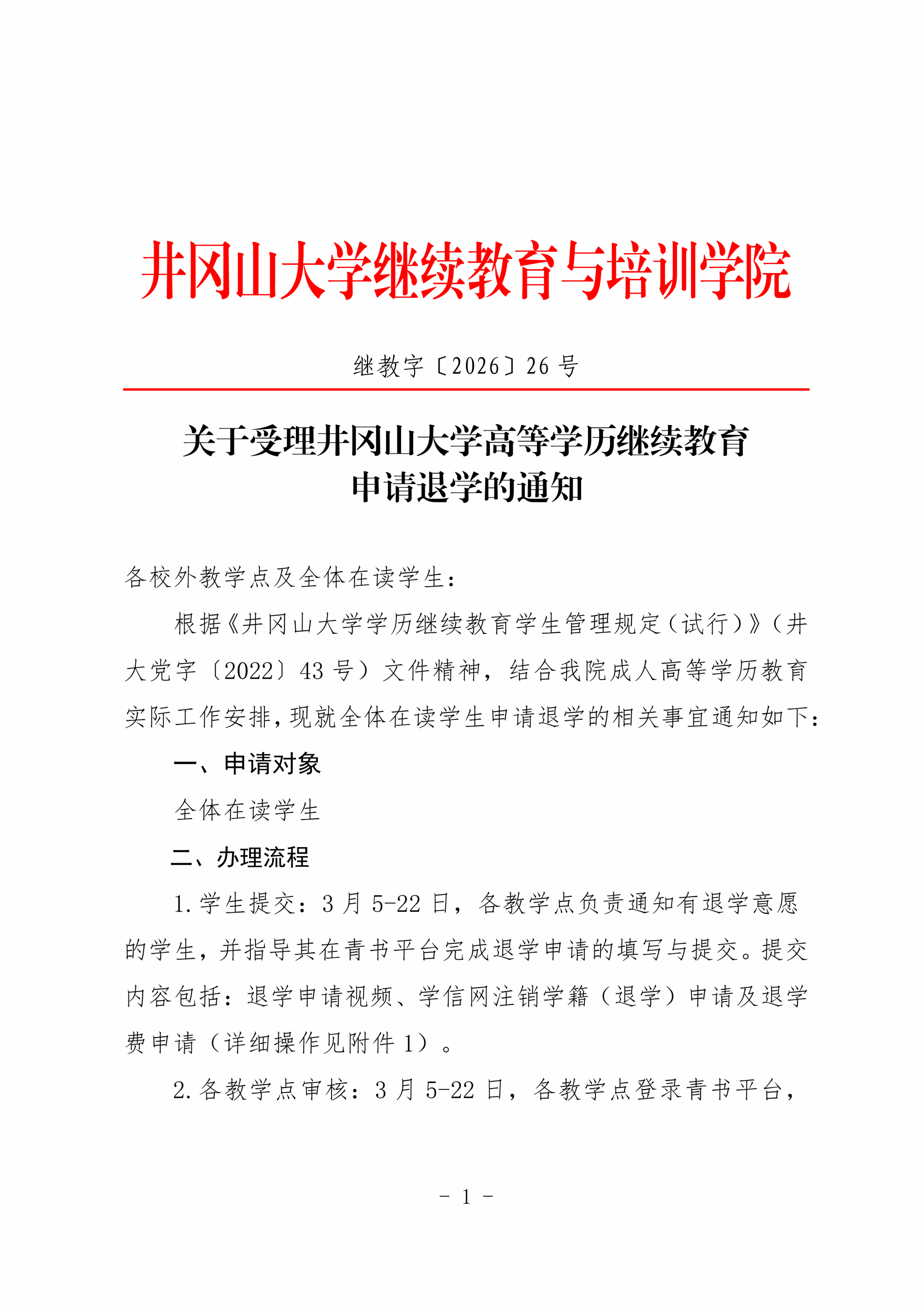 关于受理井冈山大学高等学历继续教育申请退学的通知