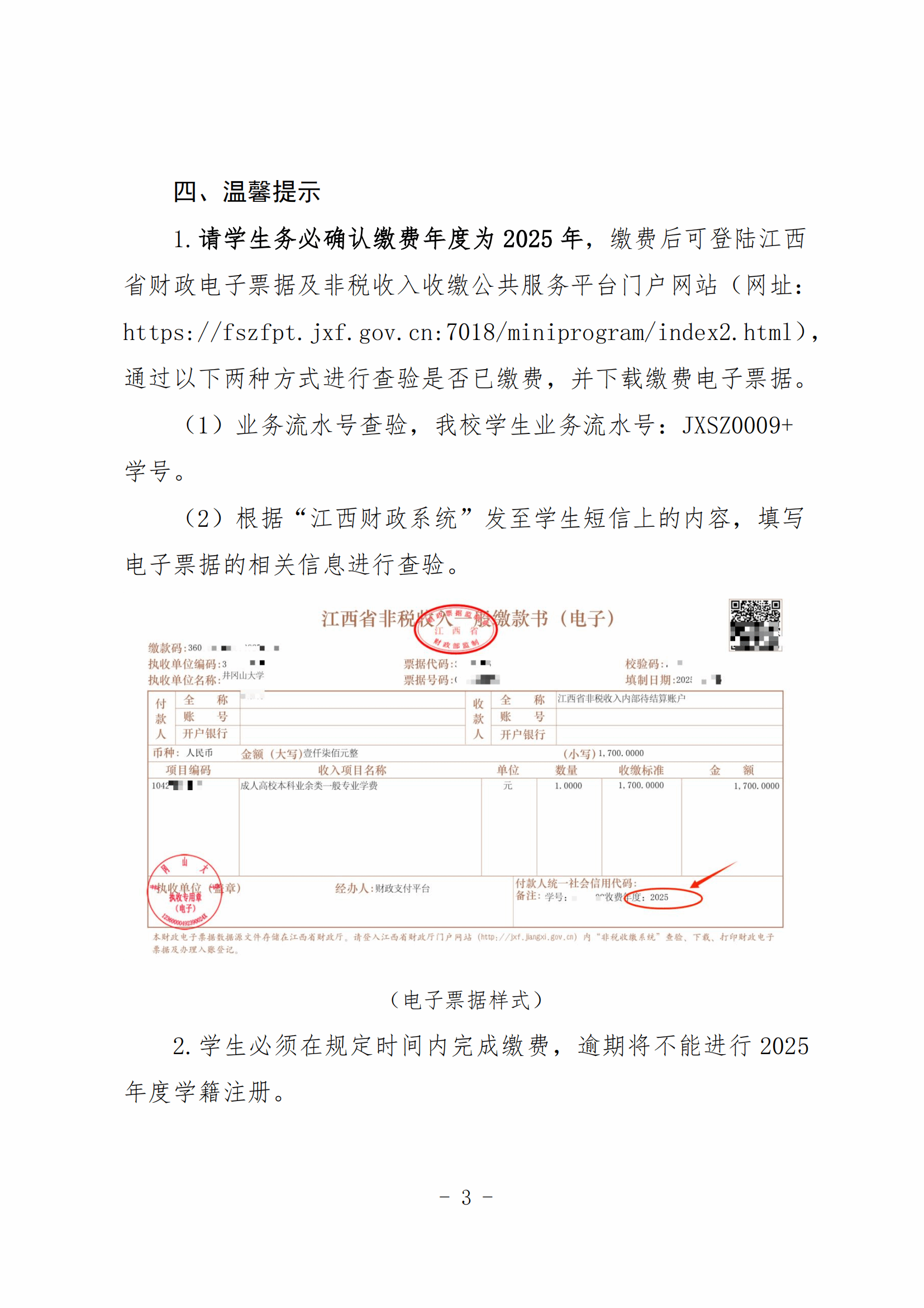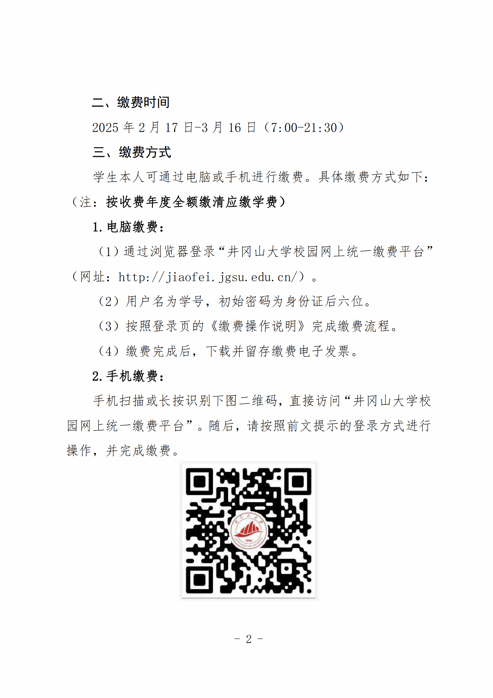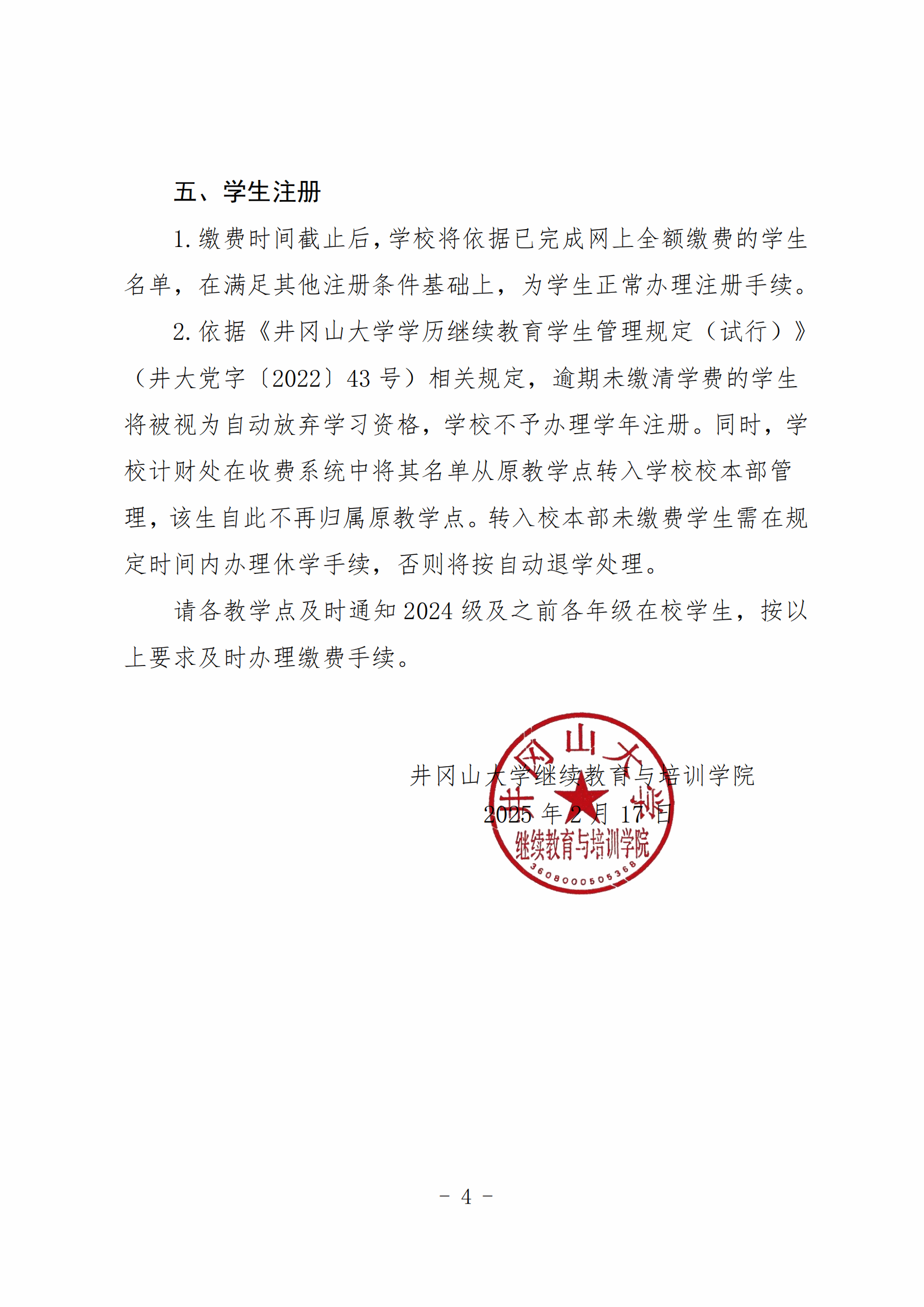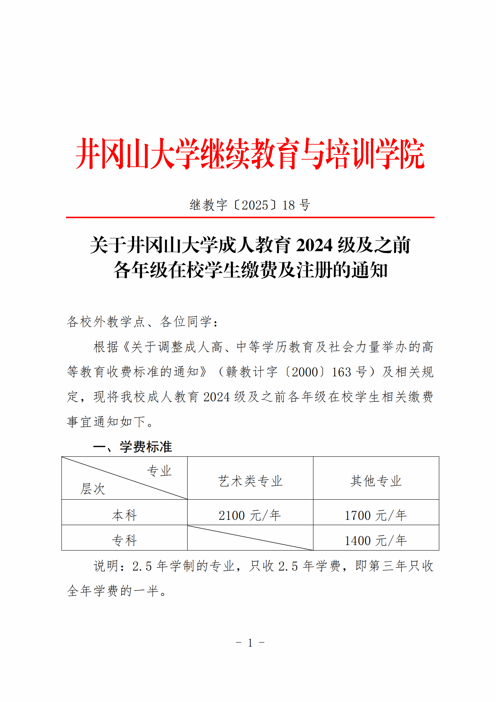 关于井冈山大学成人教育2024级及之前各年级在校学生缴费及注册的通知