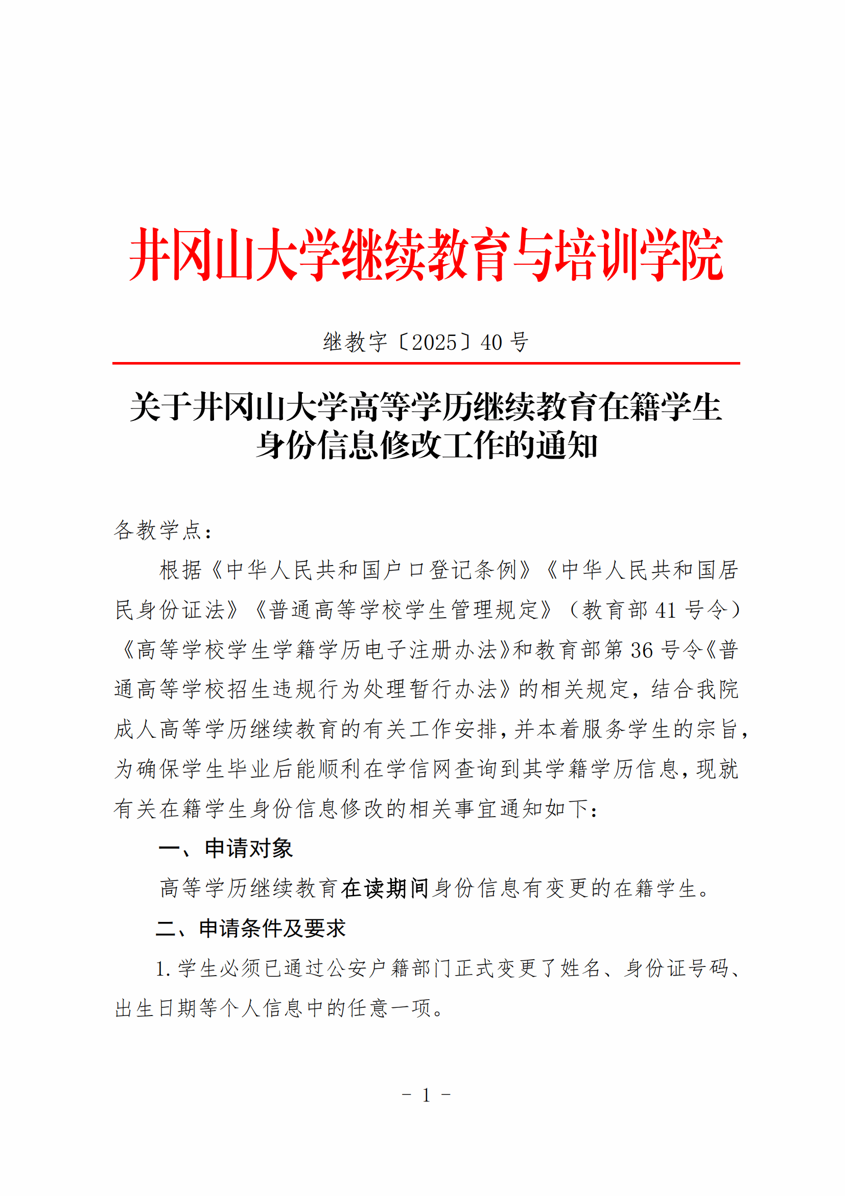关于井冈山大学高等学历继续教育在籍学生身份信息修改工作的通知