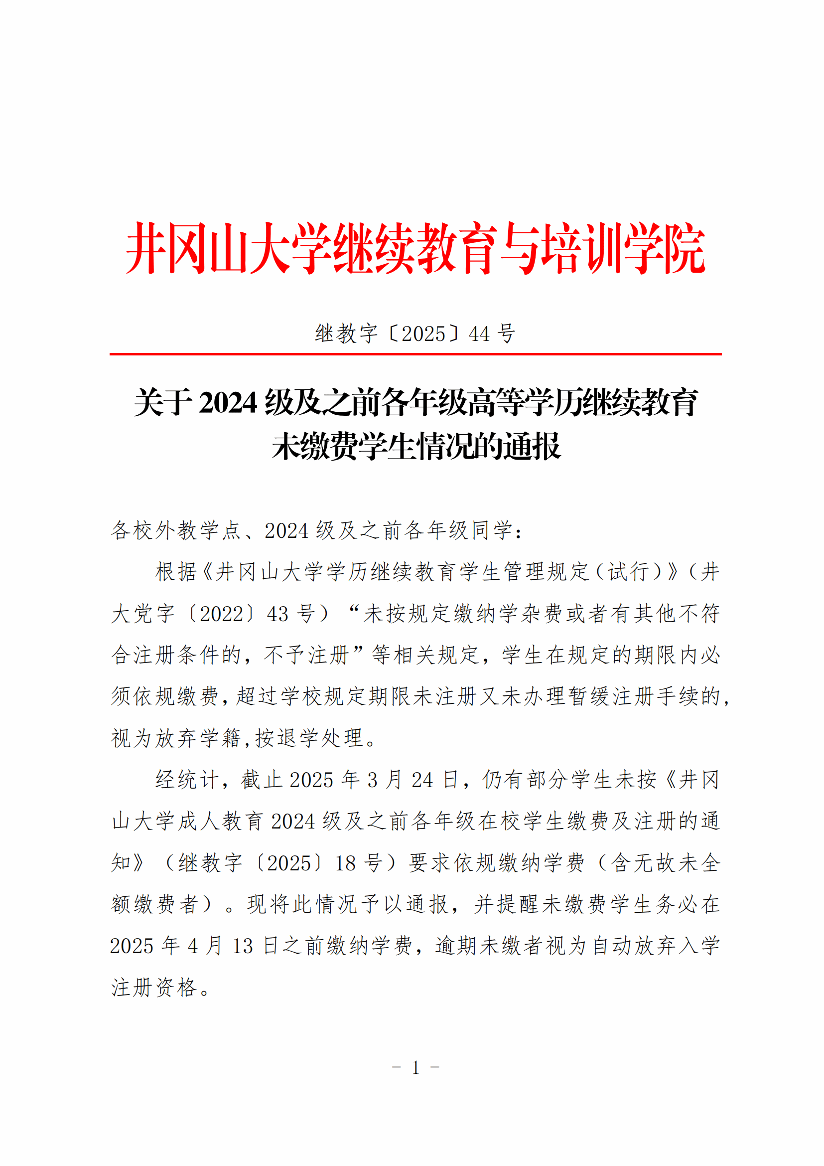 关于2024级及之前各年级高等学历继续教育未缴费学生情况的通报