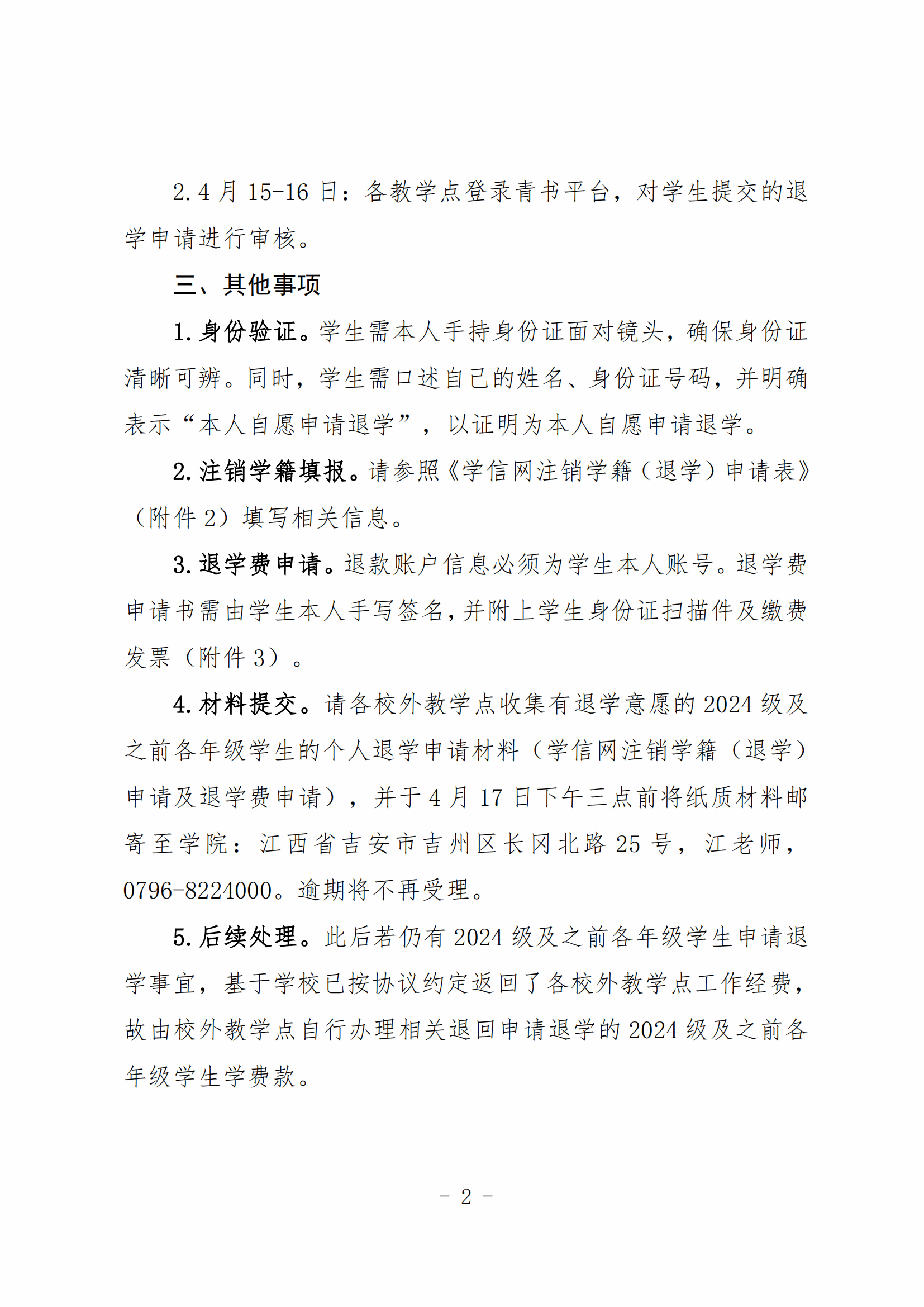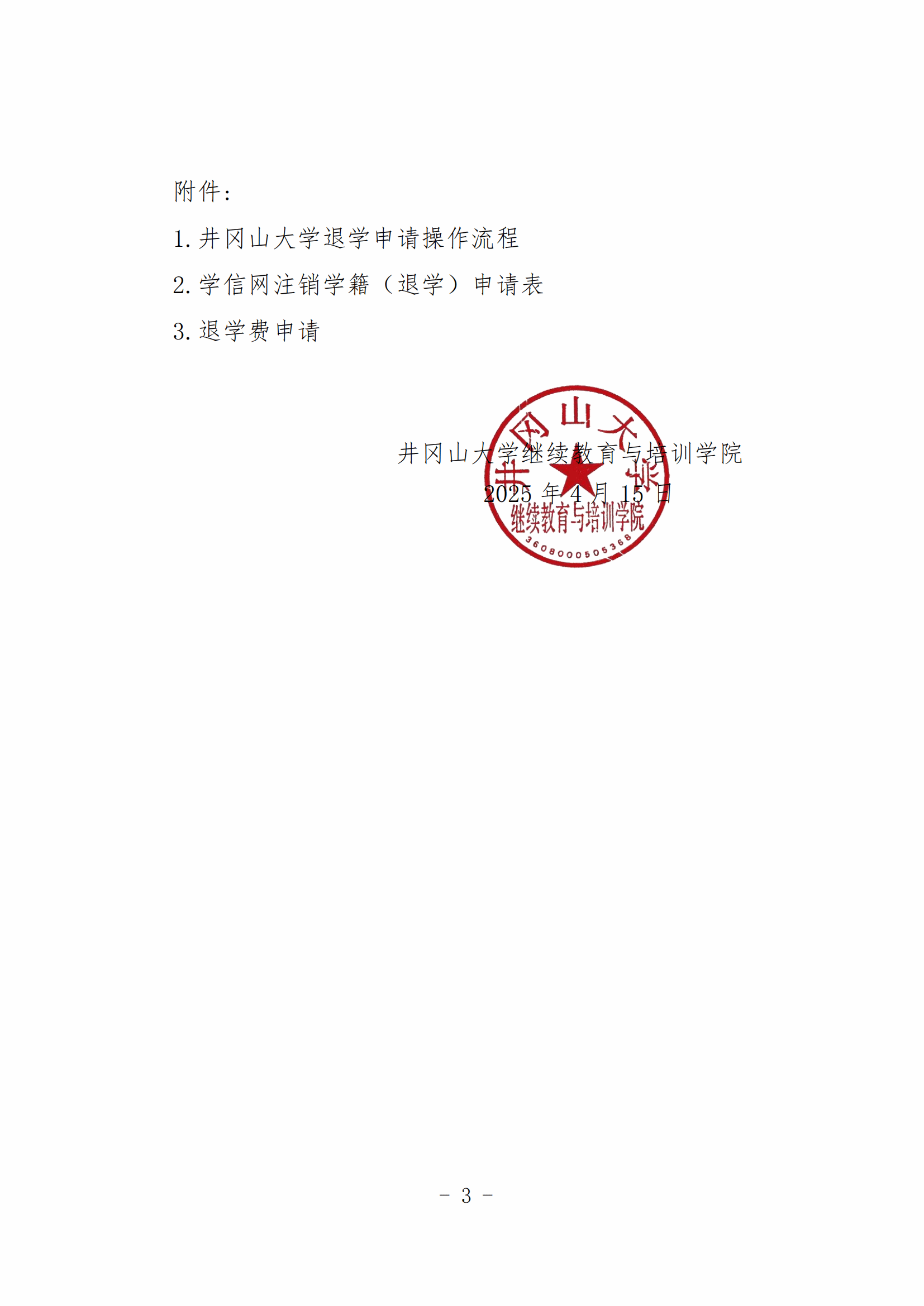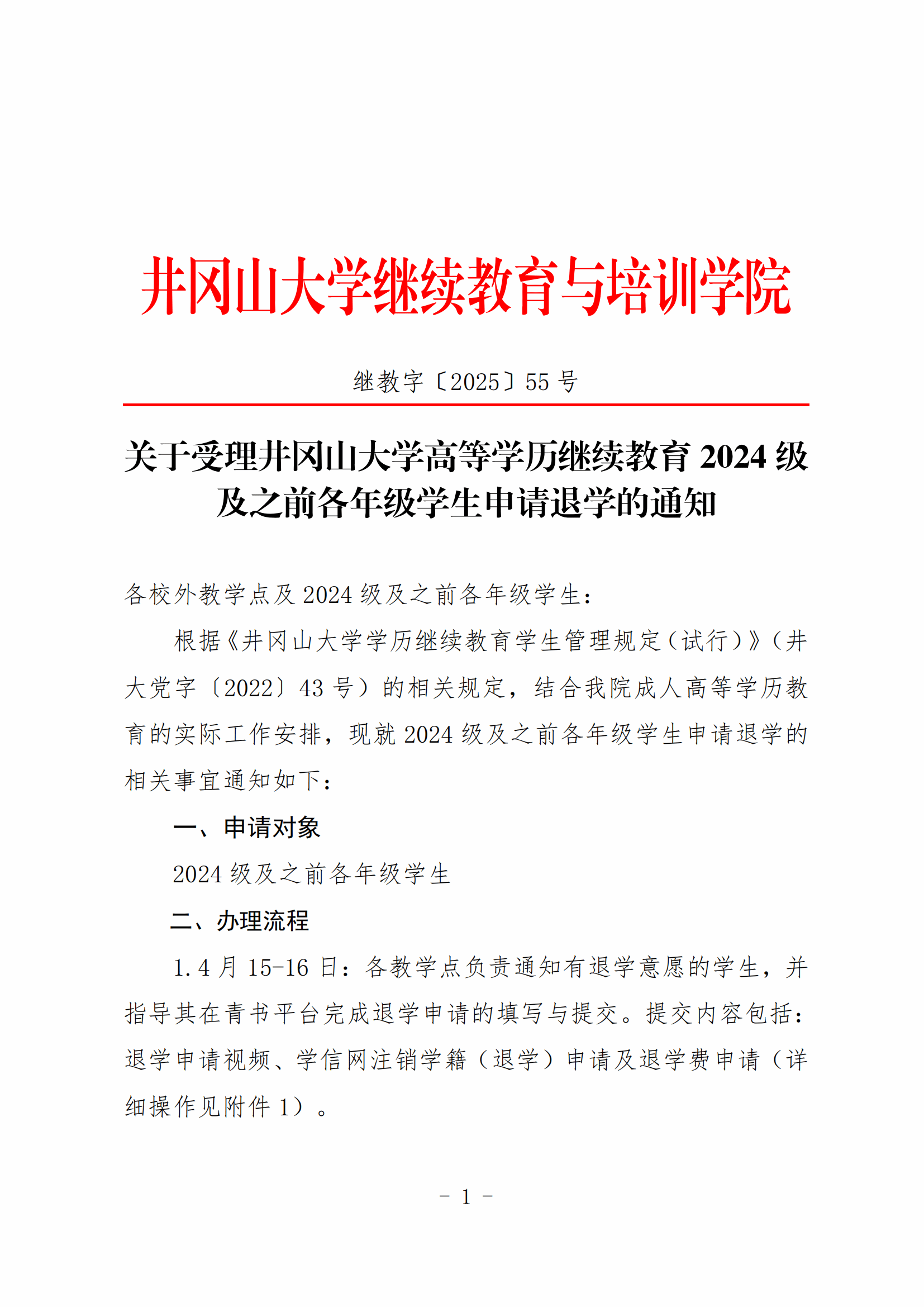 关于受理井冈山大学高等学历继续教育2024级及之前各年级学生申请退学的通知