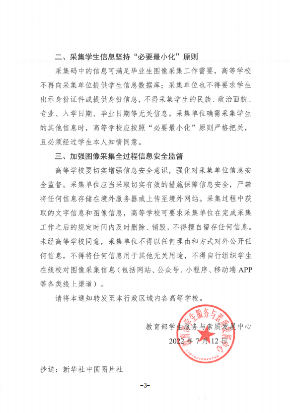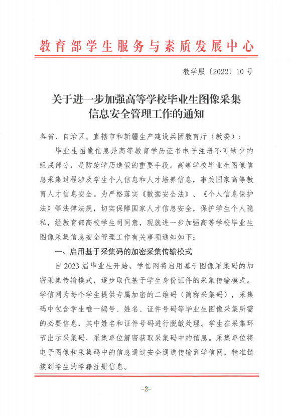 关于转发《关于进一步加强高等学校毕业生图像采集信息安全管理工作的通知》的通知