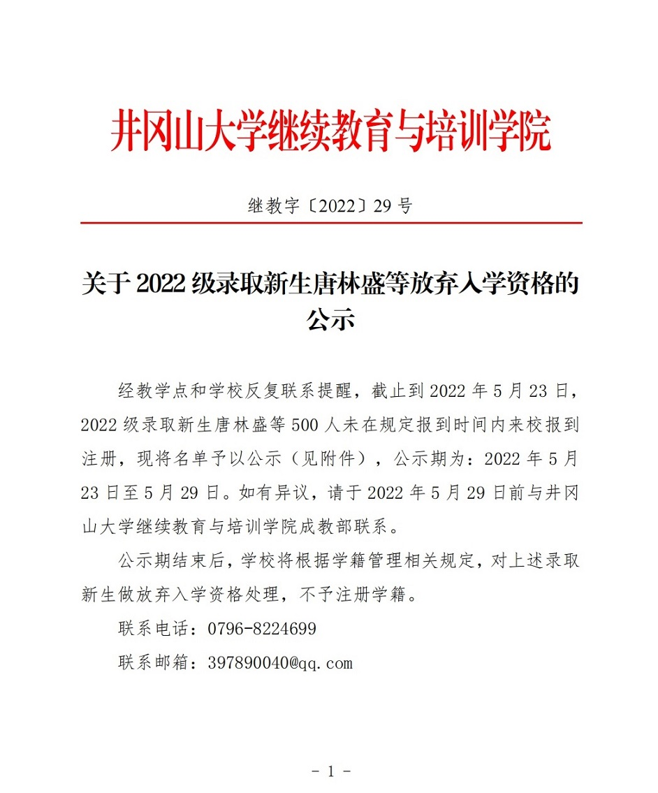 关于2022级录取新生唐林盛等放弃入学资格的公示