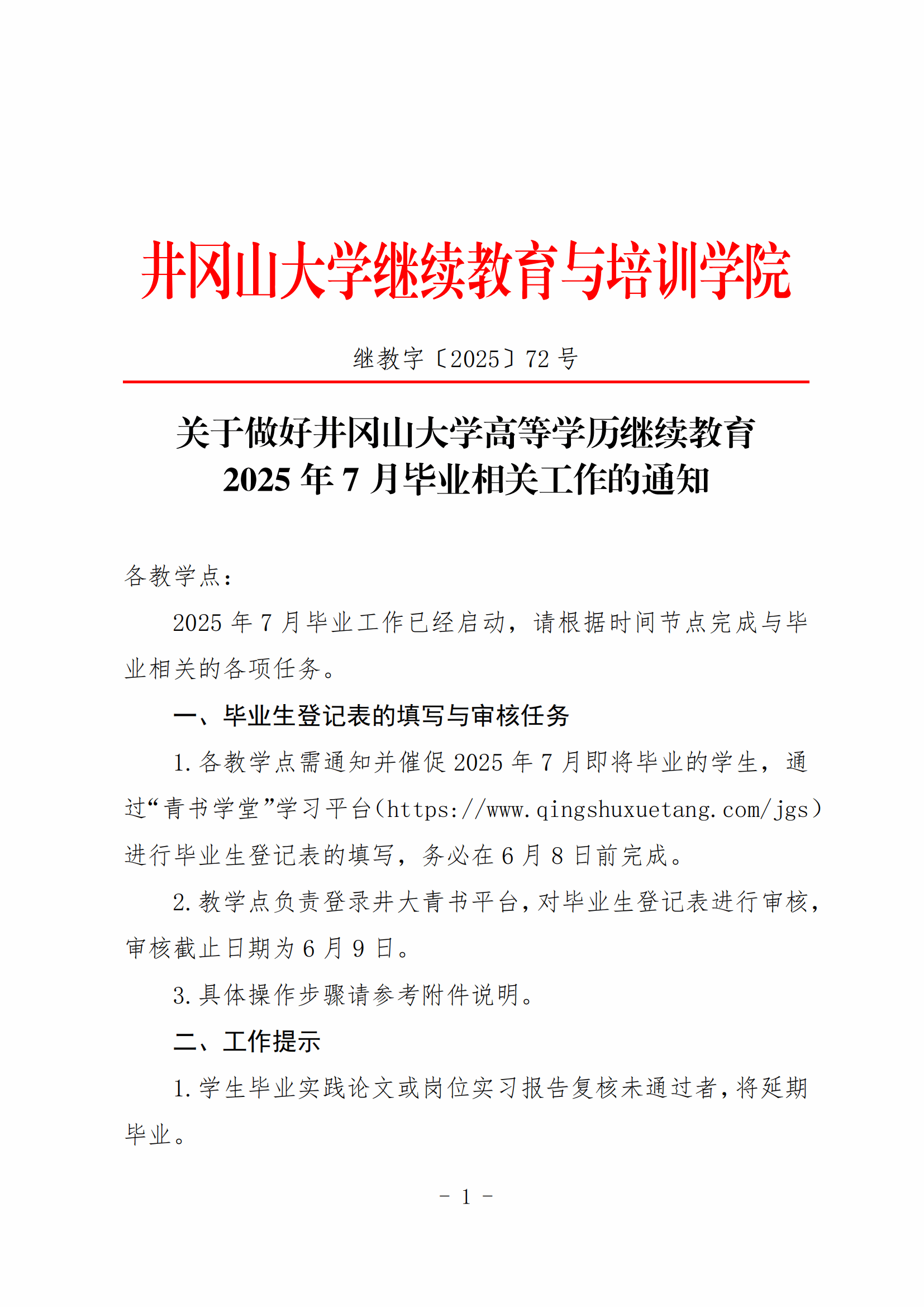 关于做好井冈山大学高等学历继续教育2025年7月毕业相关工作的通知