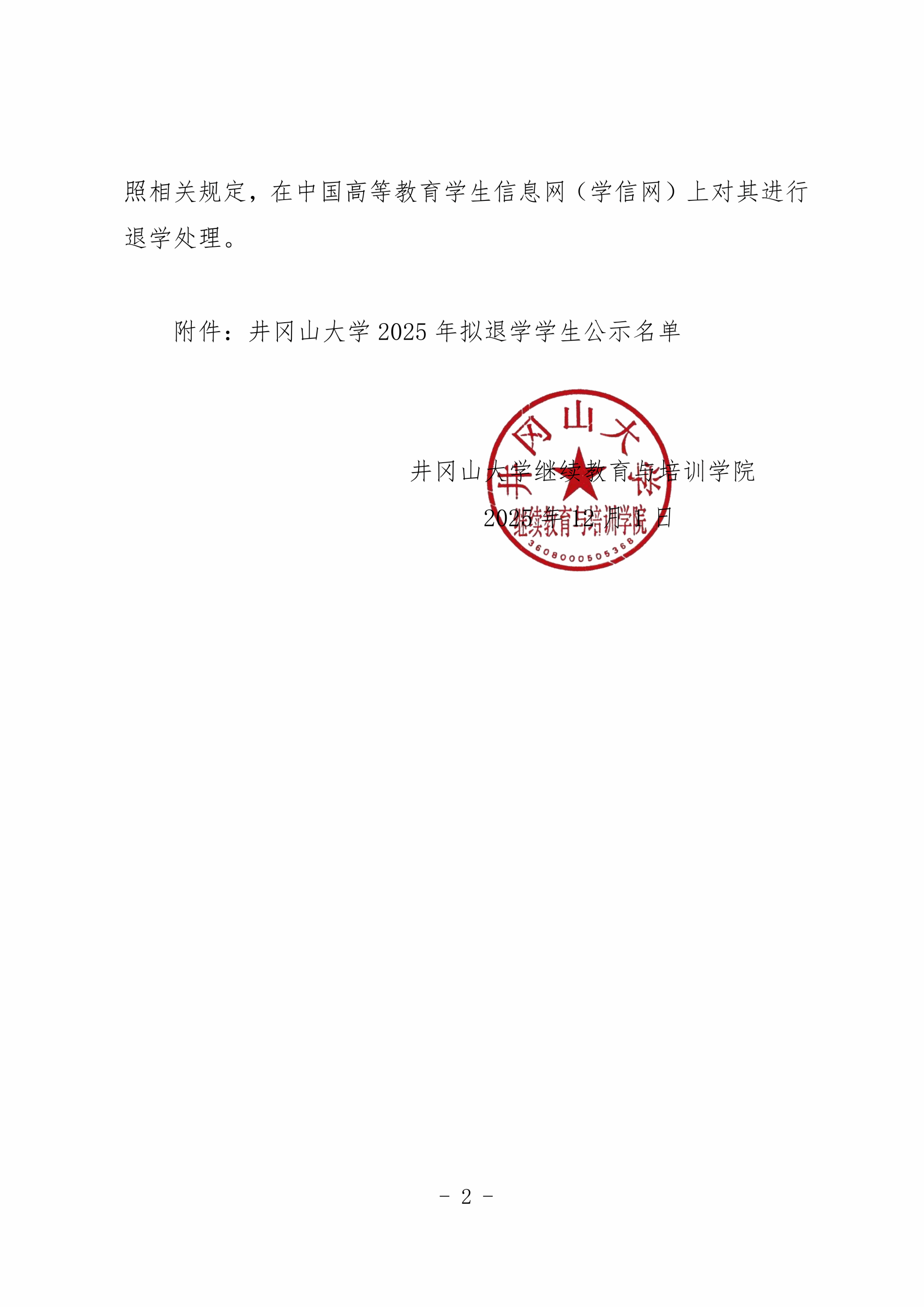 继教字〔2025〕128号附件:井冈山大学2025年拟退学学生公示名单.xlsx