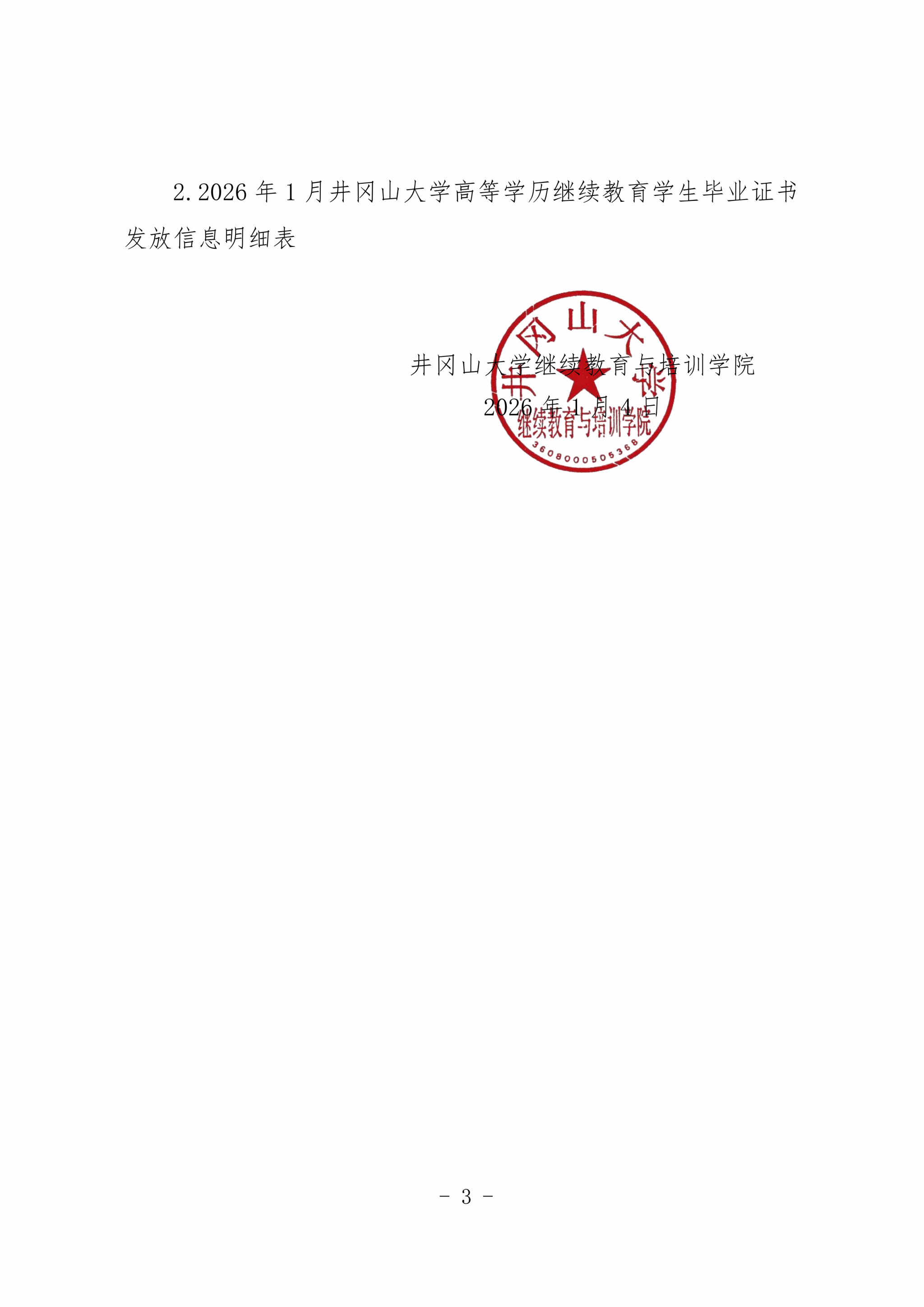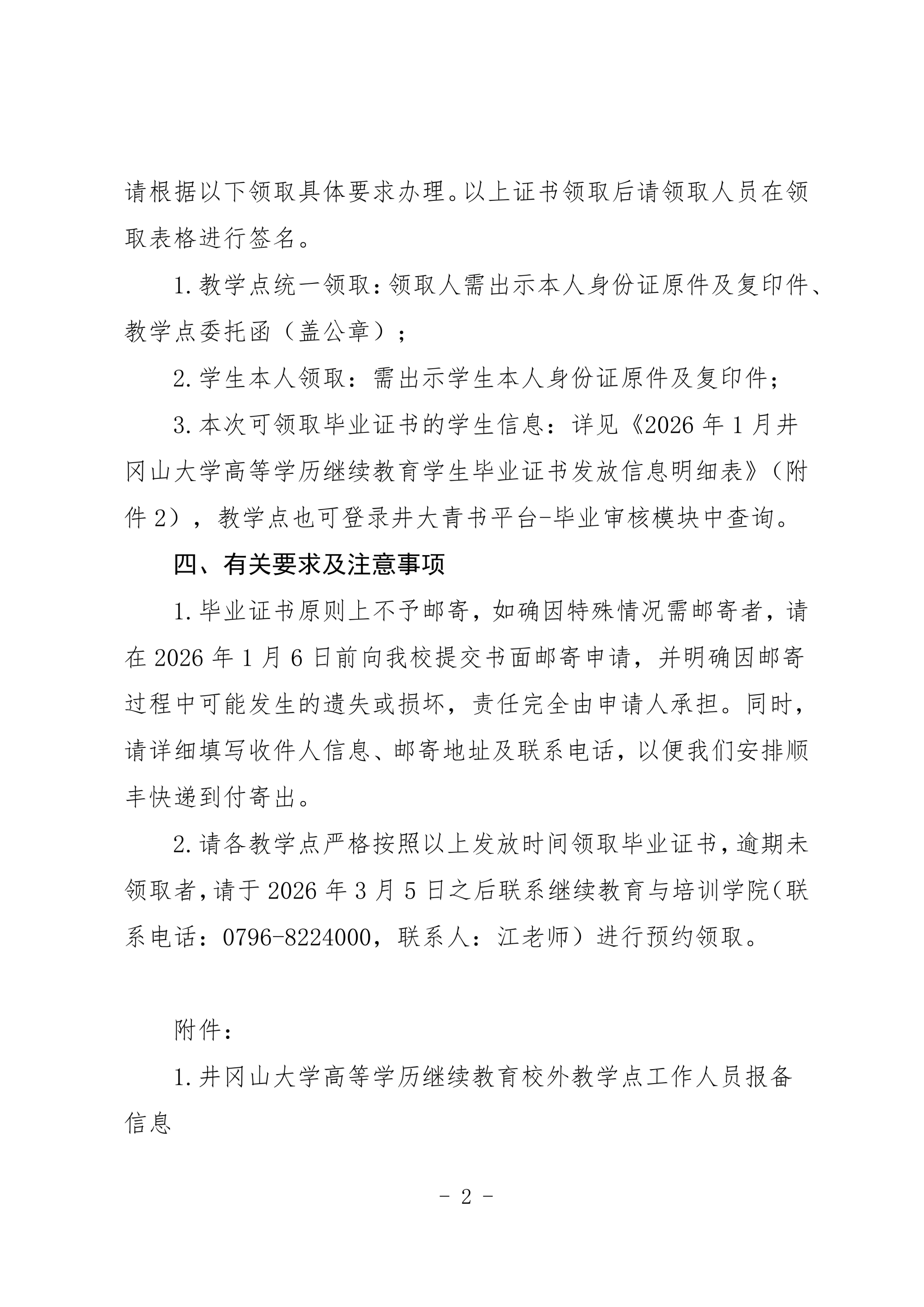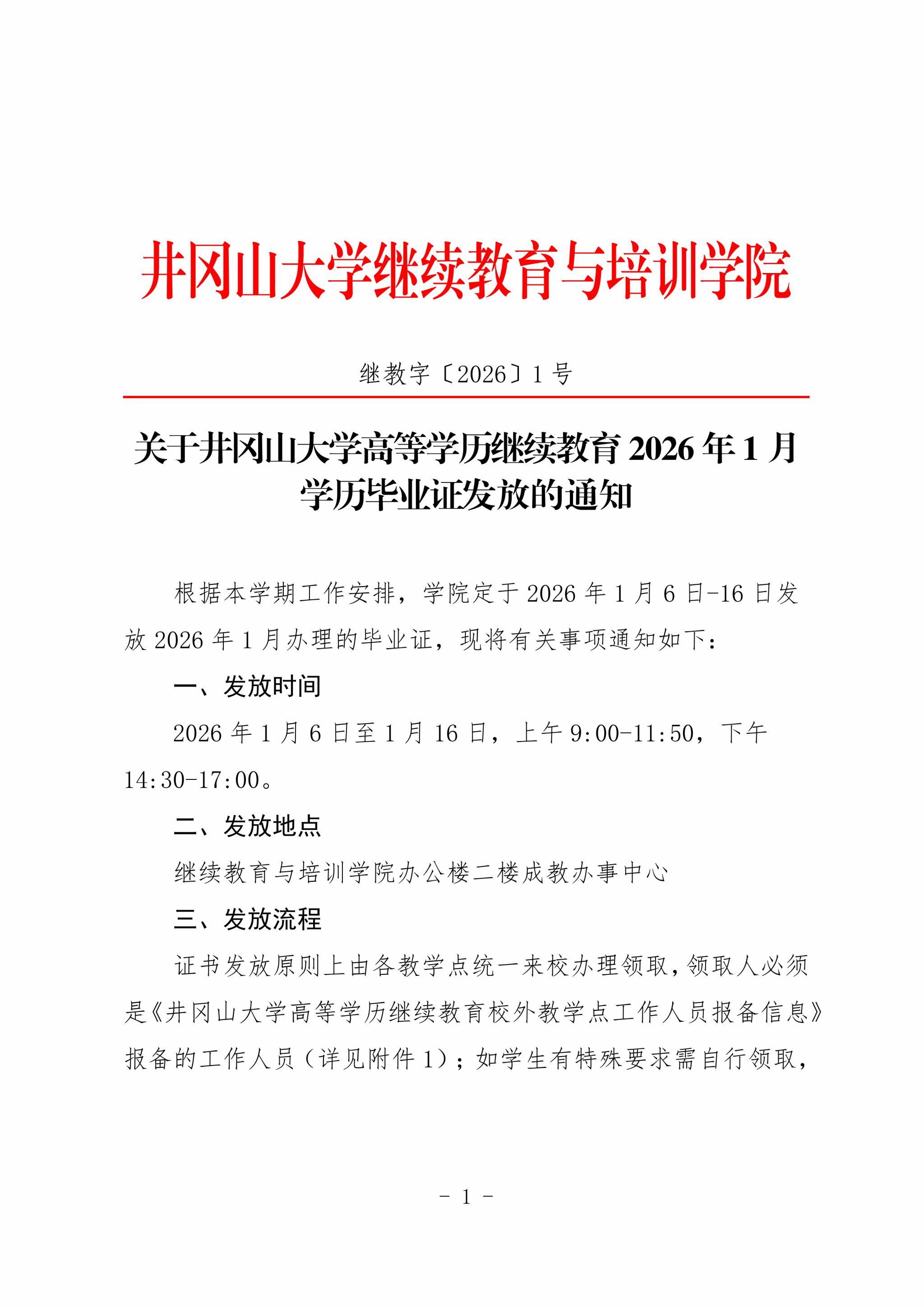 关于井冈山大学高等学历继续教育2026年1月学历毕业证发放的通知