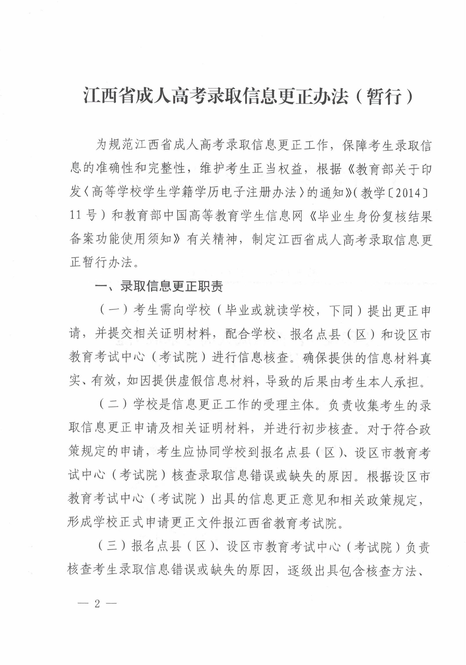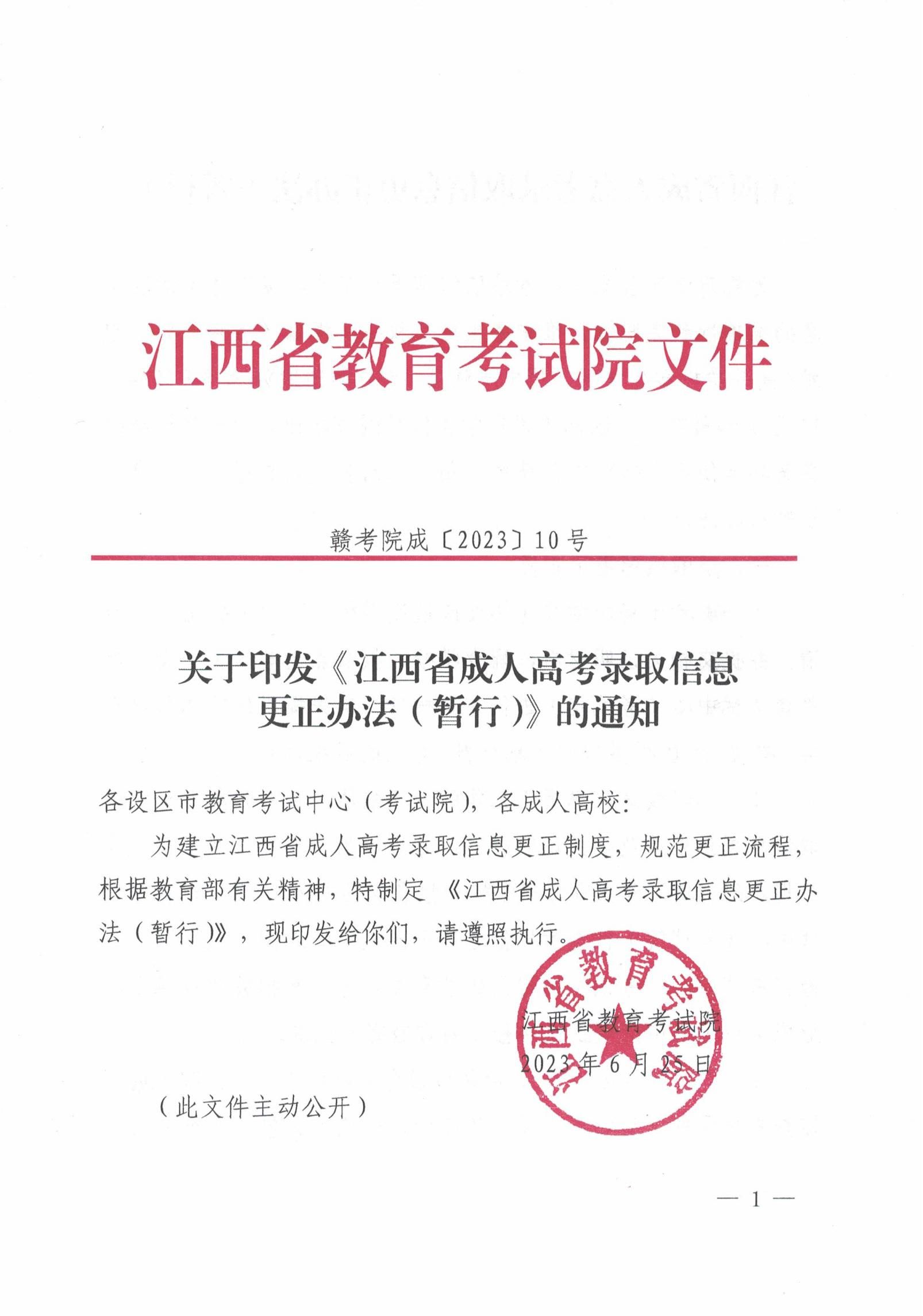 关于印发《江西省成人高等录取信息更正办法(暂行)》的通知