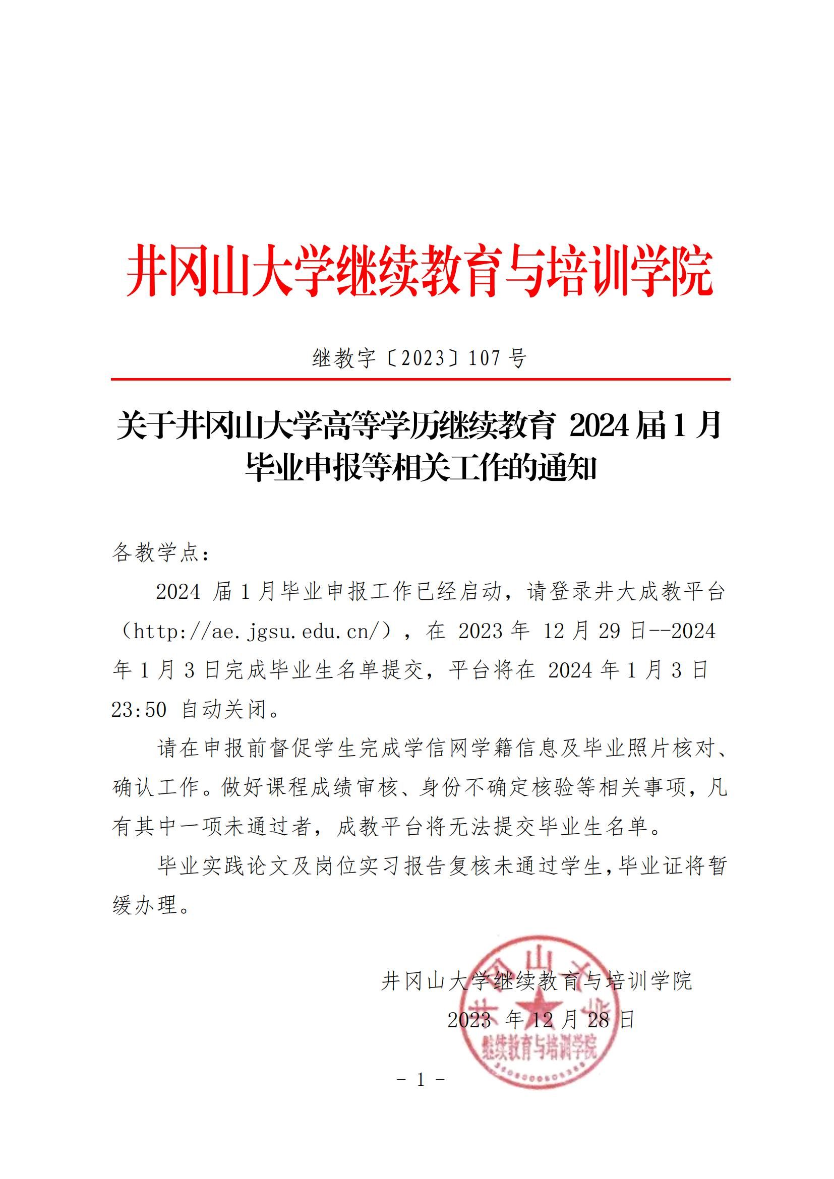 关于井冈山大学高等学历继续教育2024届1月毕业申报等相关工作的通知