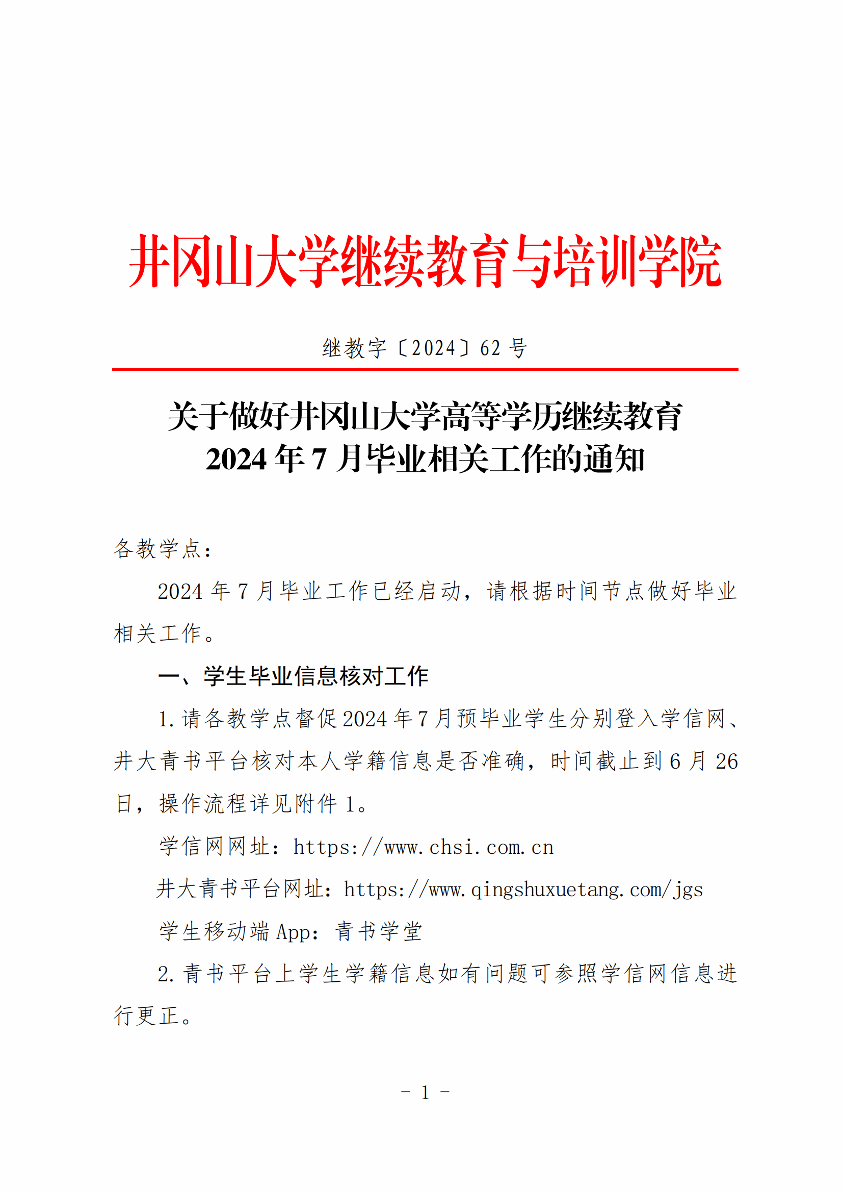 关于做好井冈山大学高等学历继续教育2024年7月毕业相关工作的通知