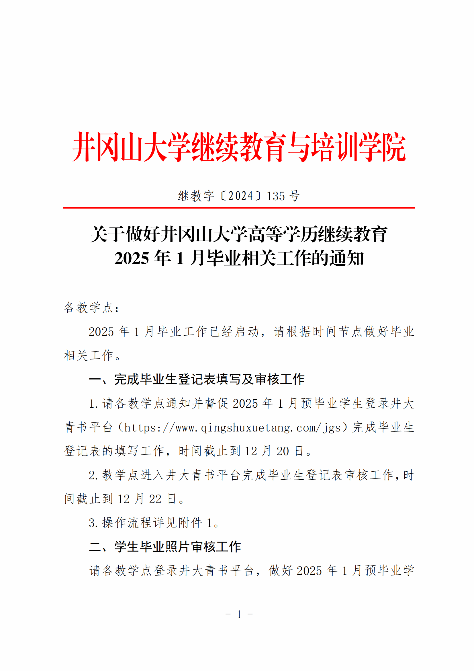 关于做好井冈山大学高等学历继续教育2025年1月毕业相关工作的通知