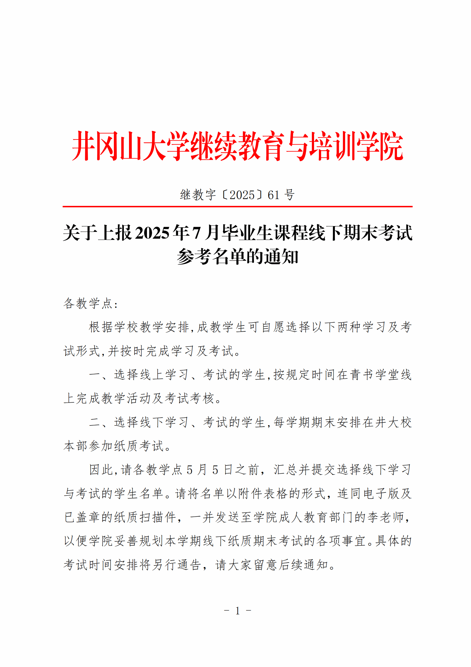 关于上报2025年7月毕业生课程线下期末考试参考名单的通知