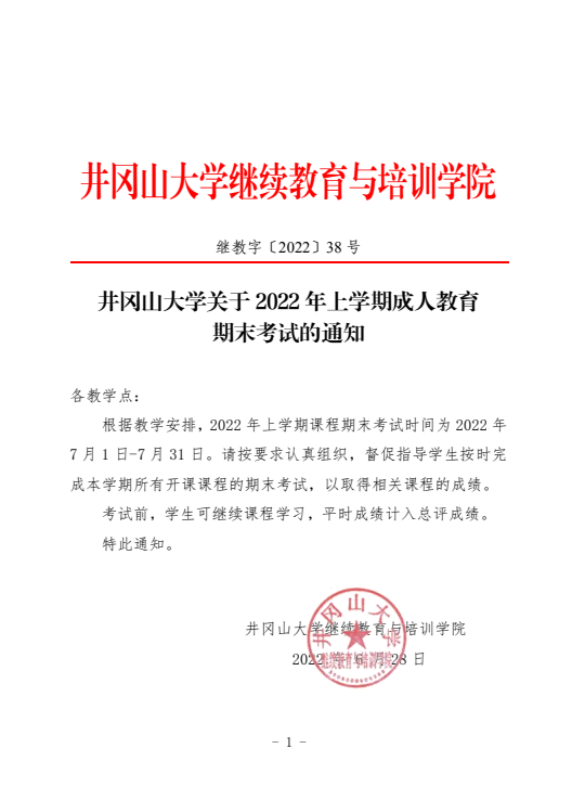 井冈山大学关于2022年上学期成人教育期末考试的通知