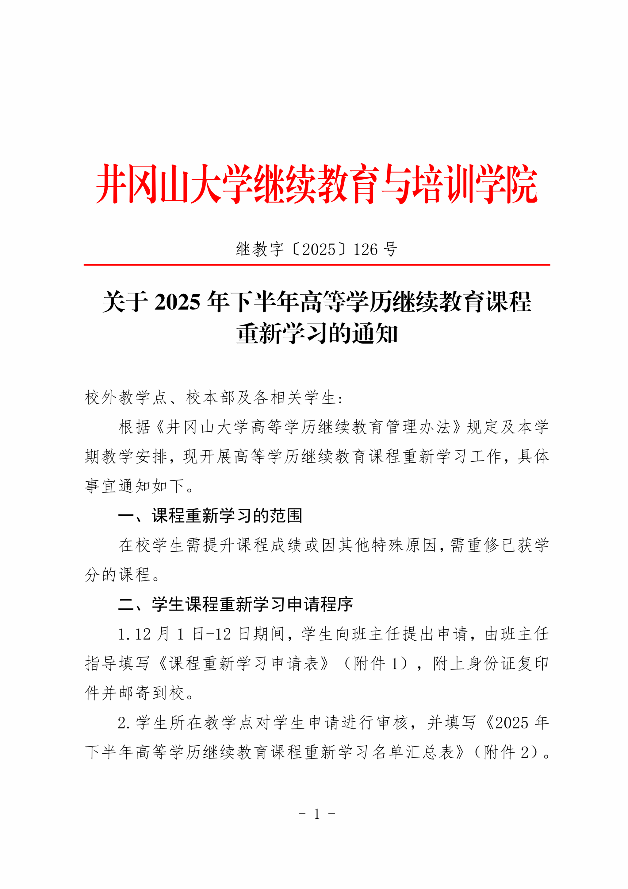 关于2025年下半年高等学历继续教育课程重新学习的通知