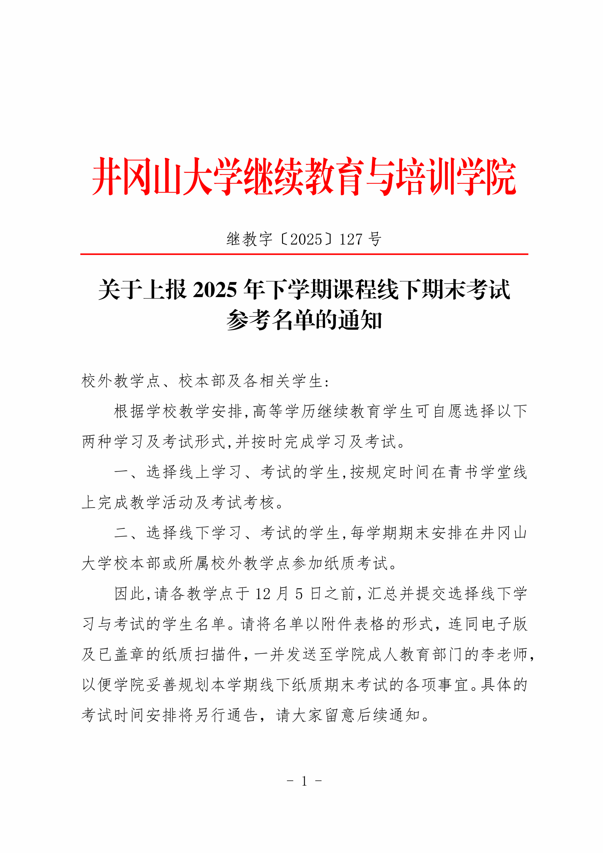 关于上报2025年下学期课程线下期末考试参考名单的通知