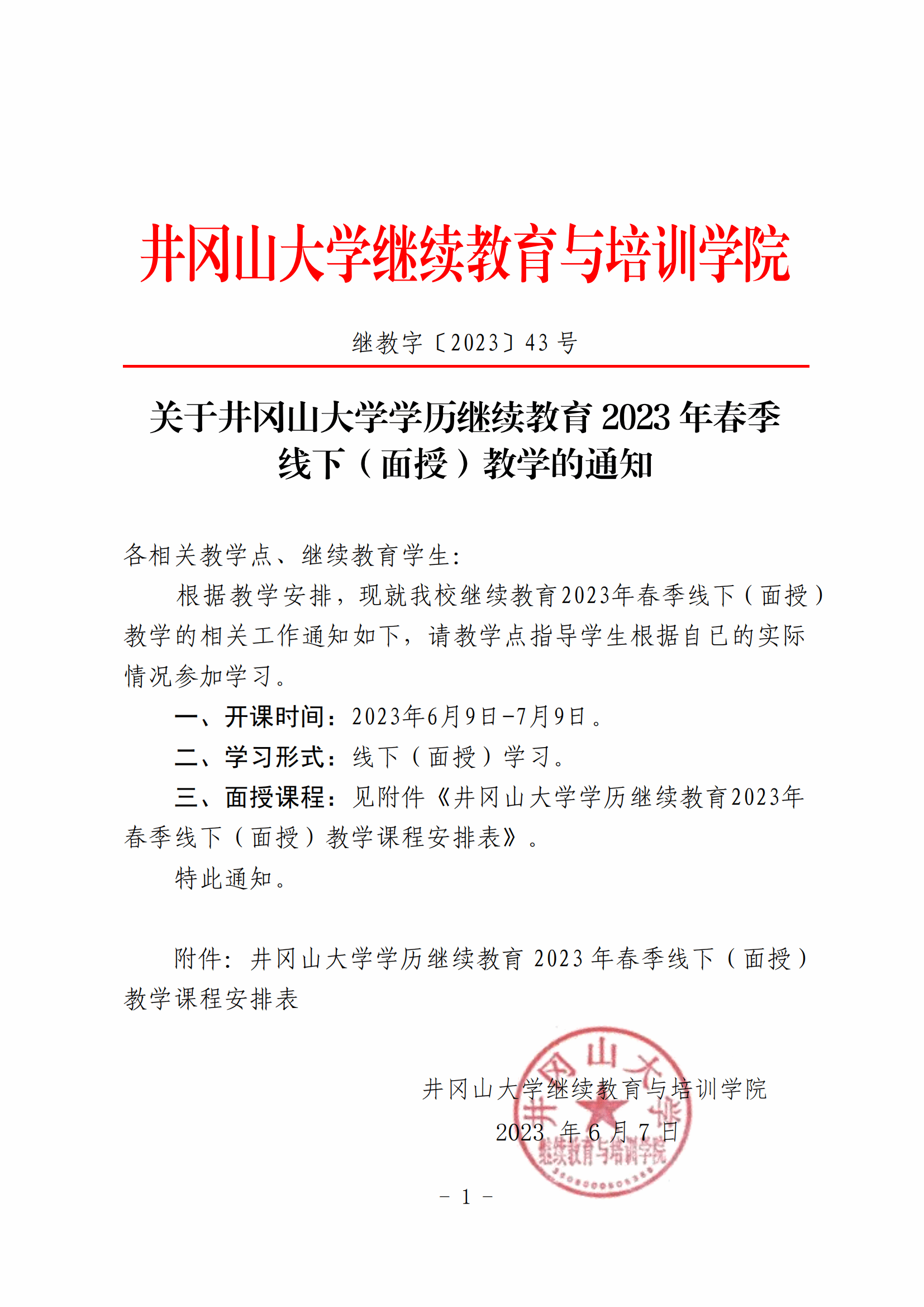 关于井冈山大学学历继续教育2023年春季线下(面授)教学的通知