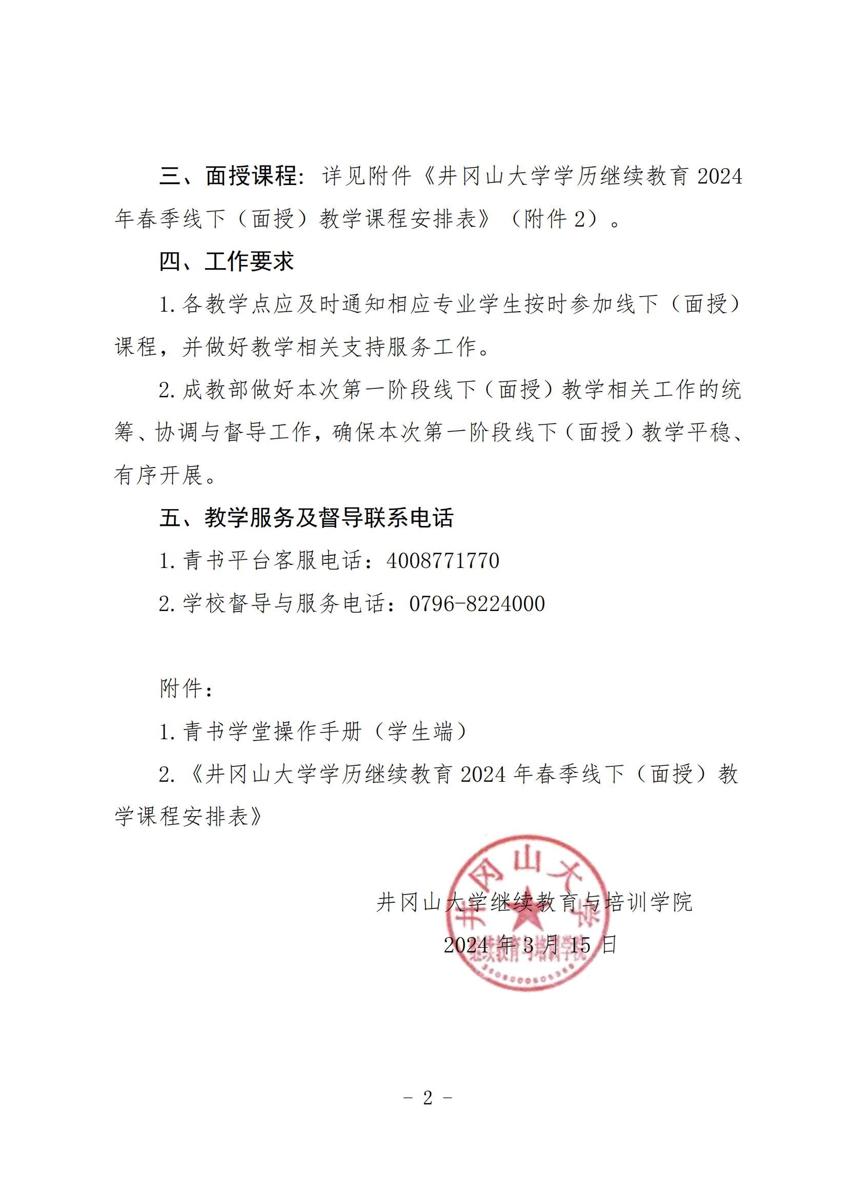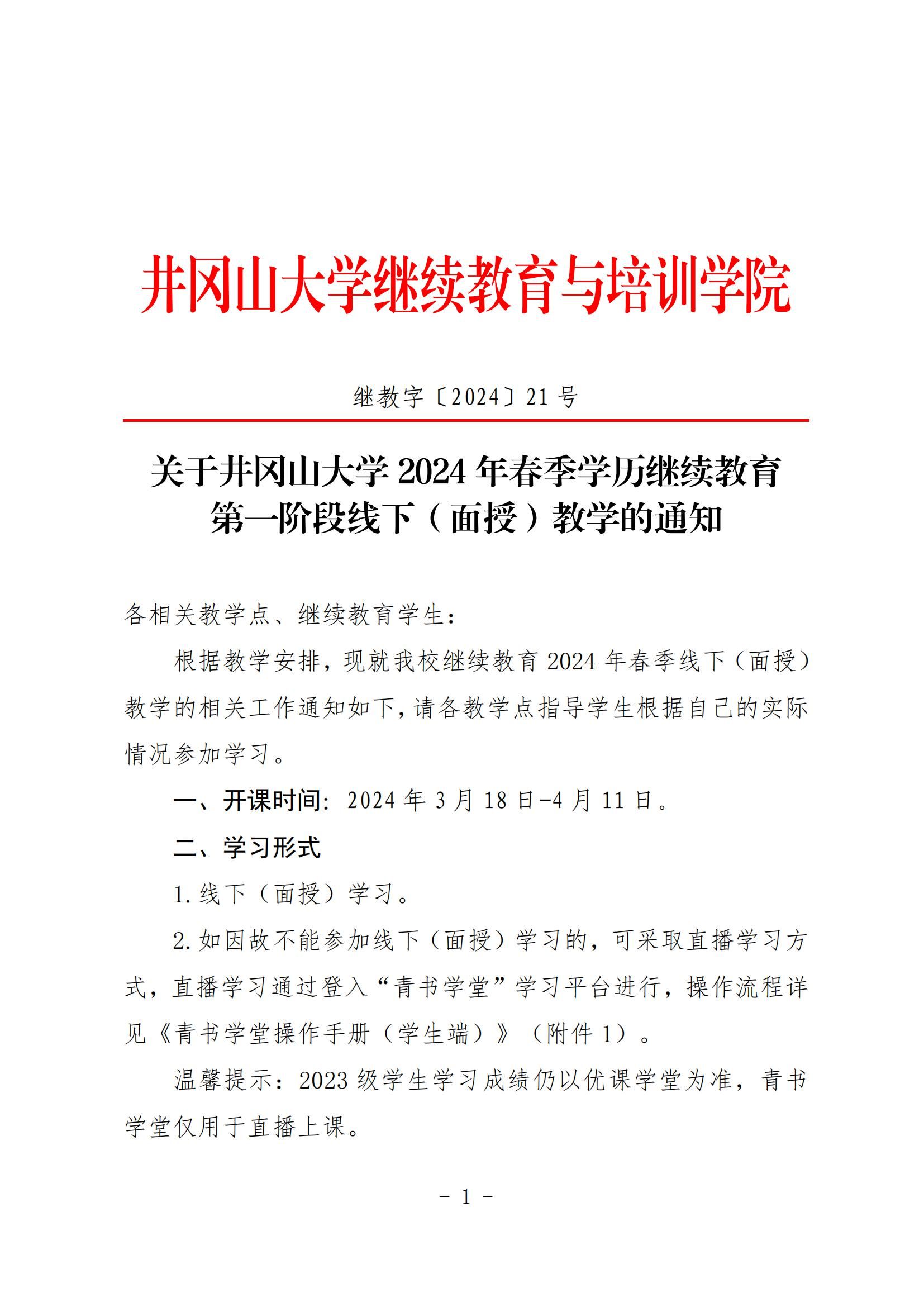 关于井冈山大学2024年春季学历继续教育第一阶段线下(面授)教学的通知