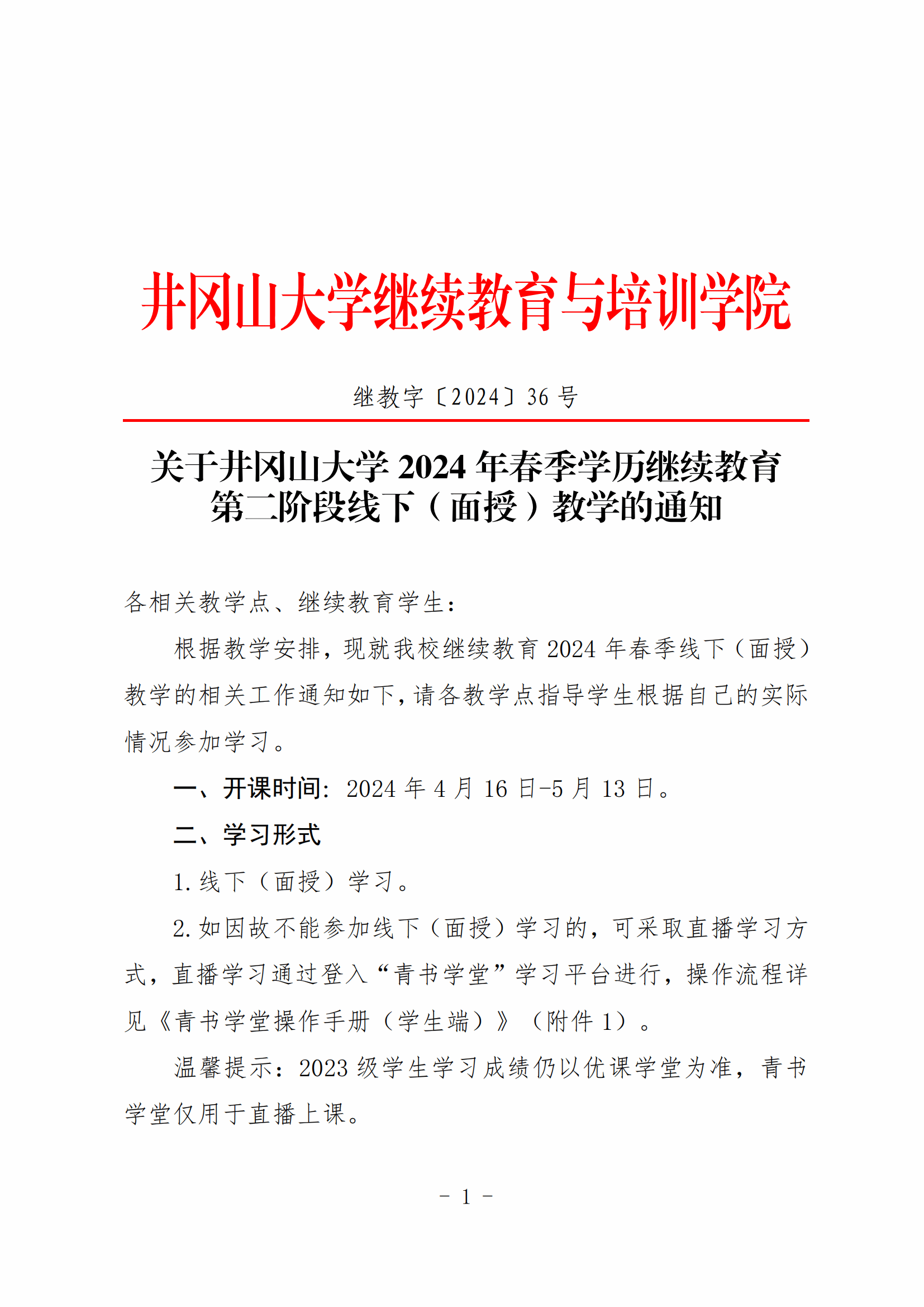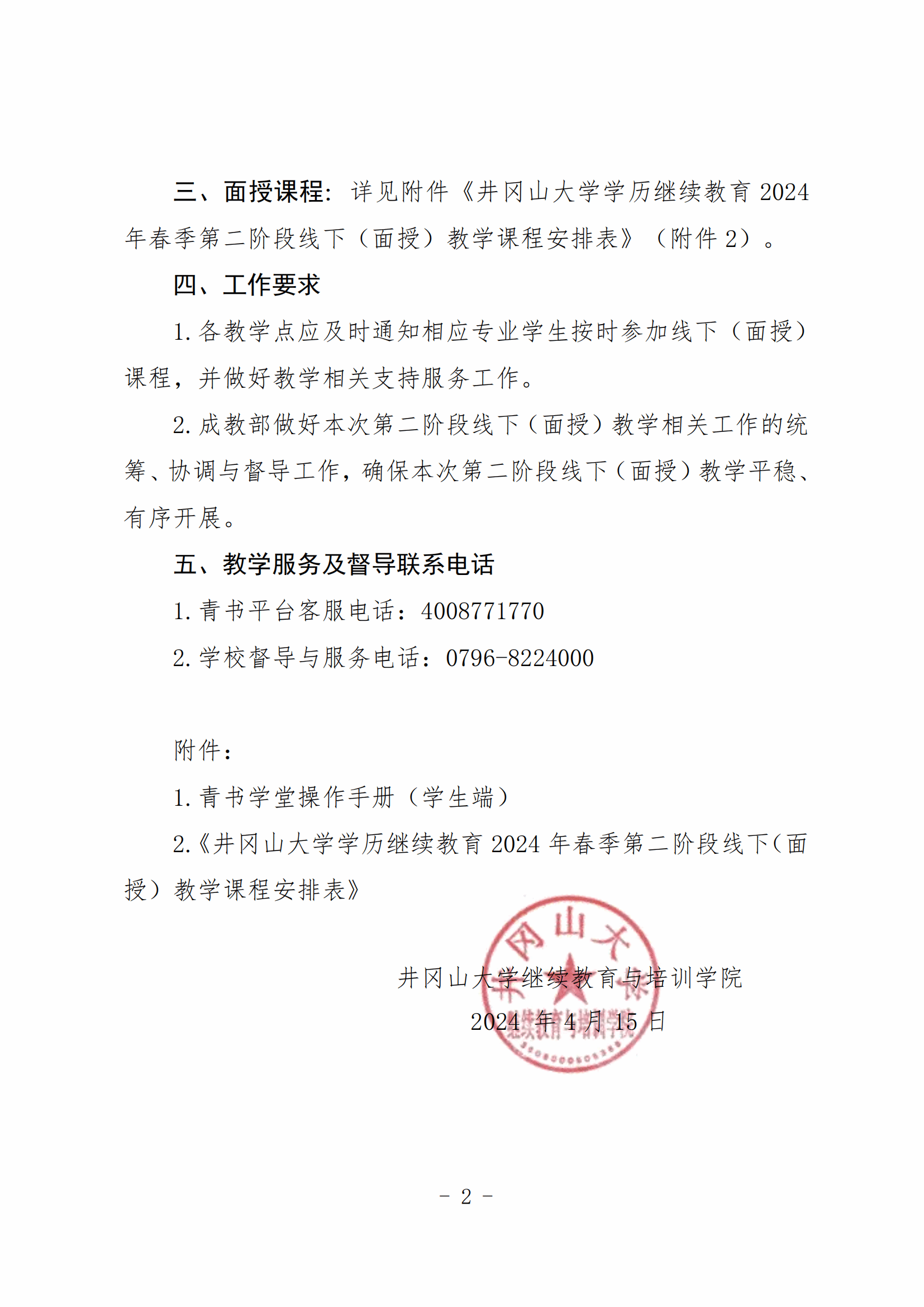 关于井冈山大学2024年春季学历继续教育第二阶段线下(面授)教学的通知