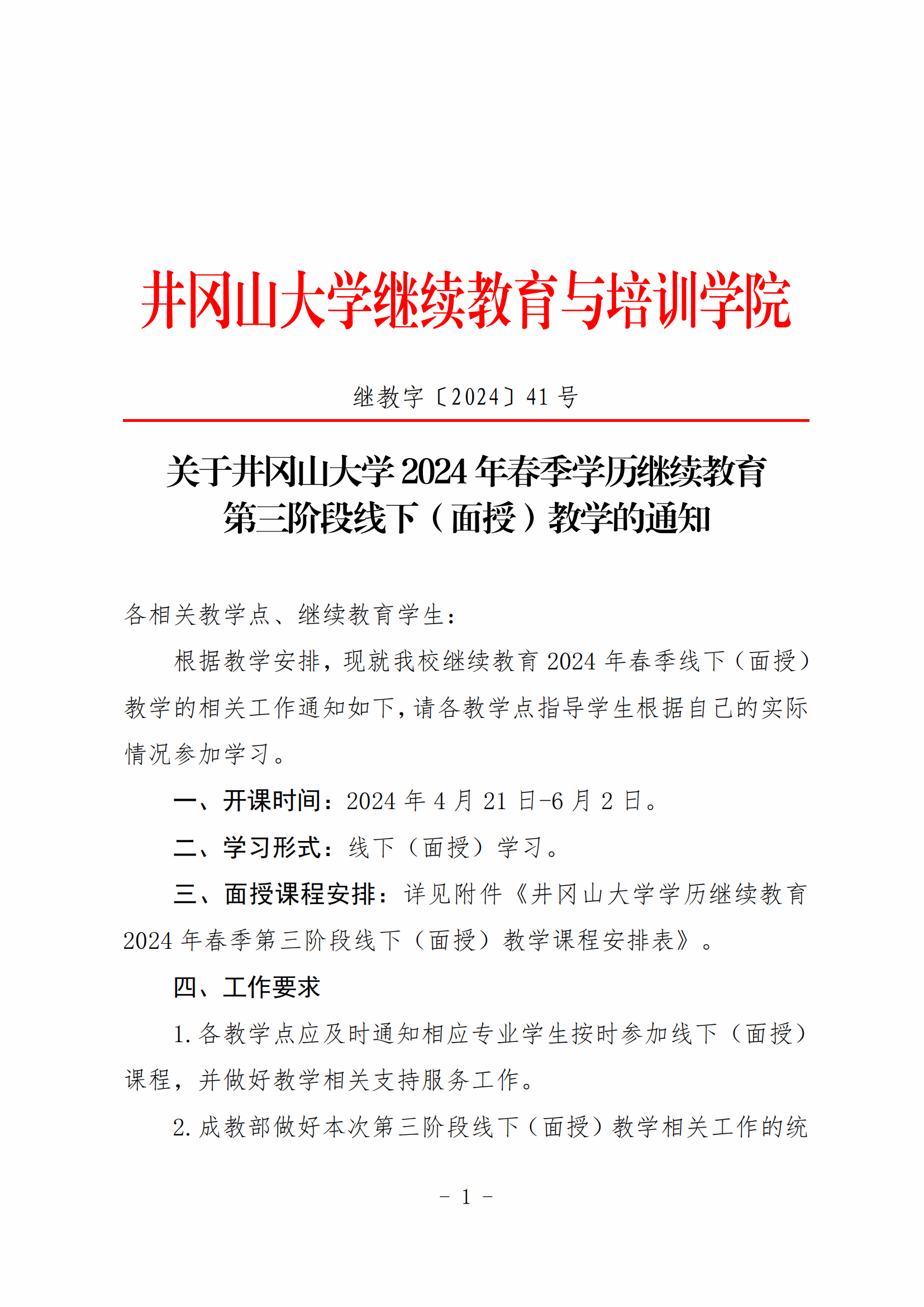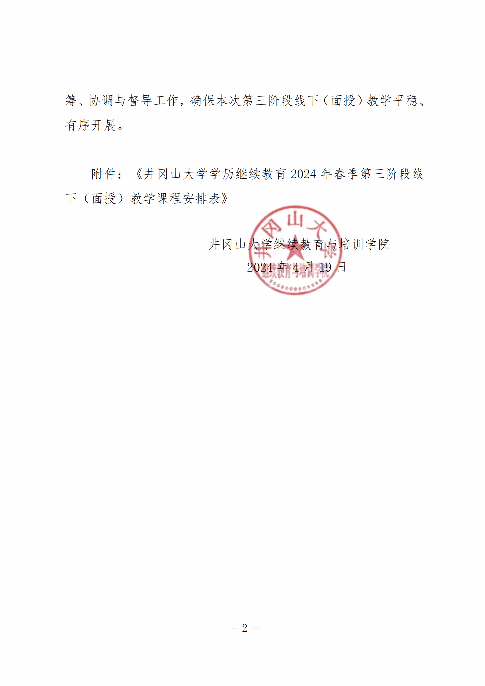 关于井冈山大学2024年春季学历继续教育第三阶段线下(面授)教学的通知