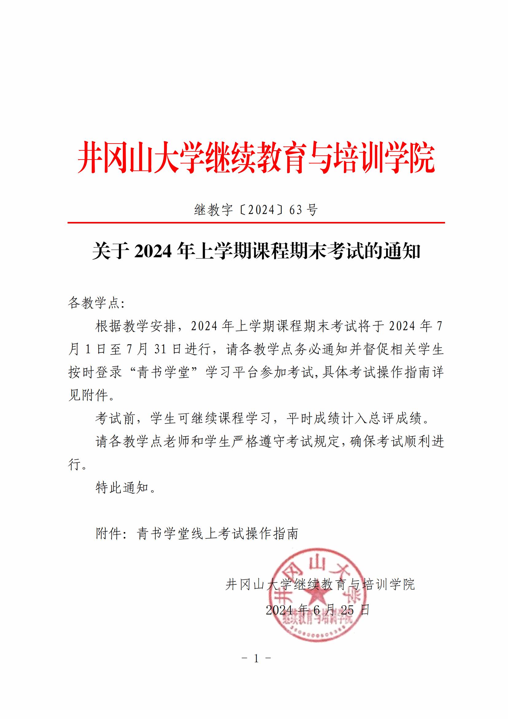 关于2024年上学期课程期末考试的通知