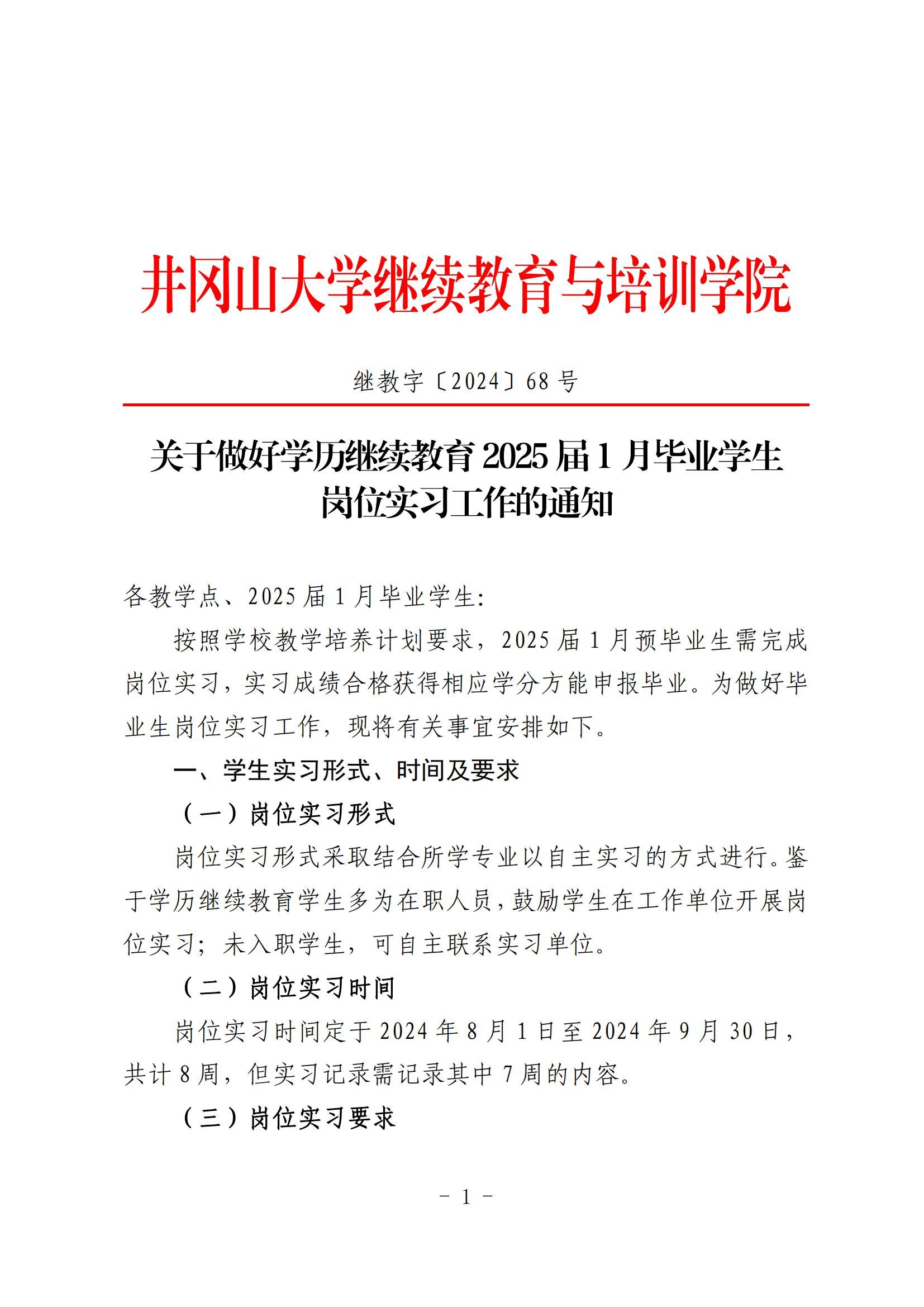 关于做好学历继续教育2025届1月毕业学生岗位实习工作的通知