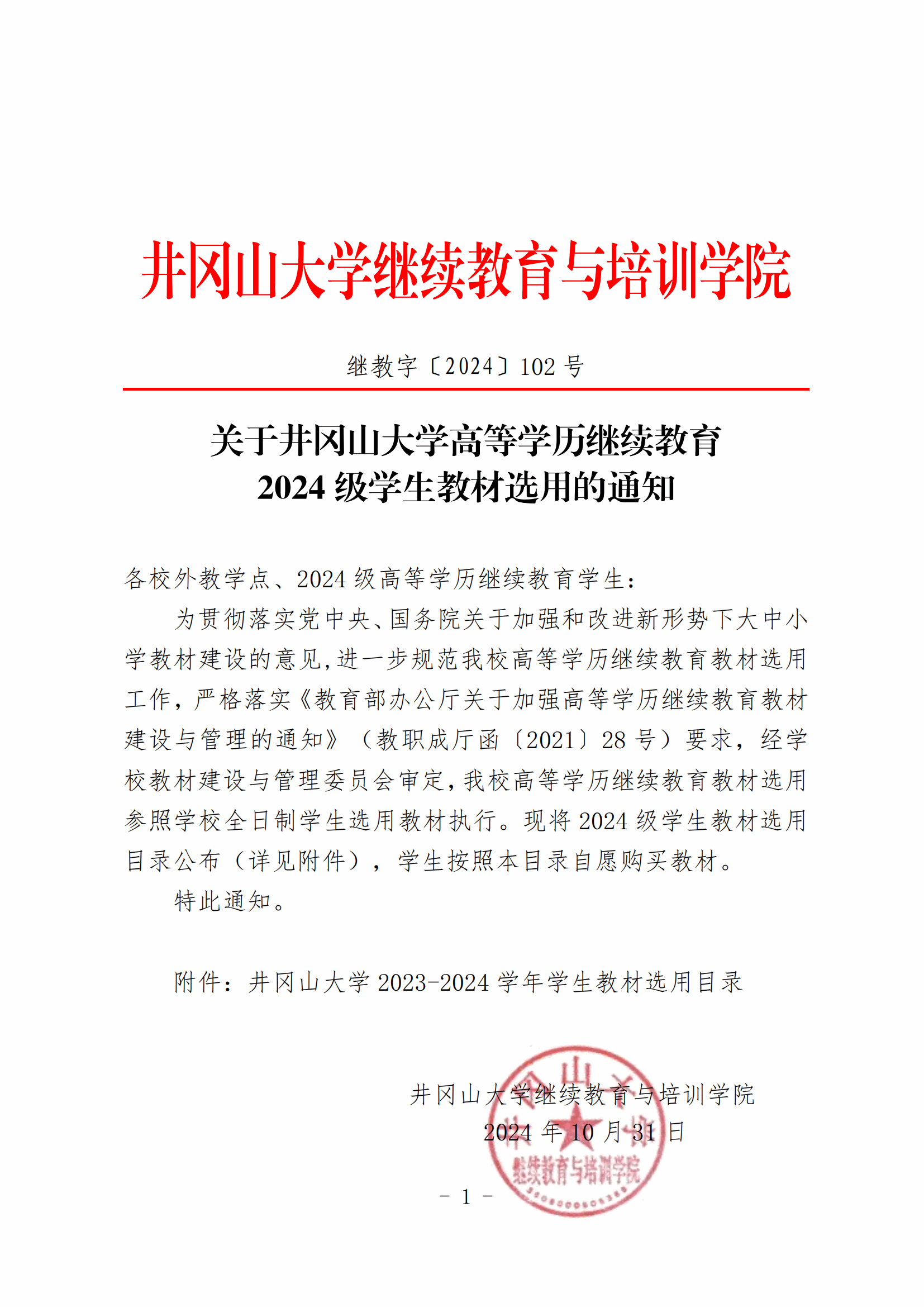 关于井冈山大学高等学历继续教育2024级学生教材选用的通知