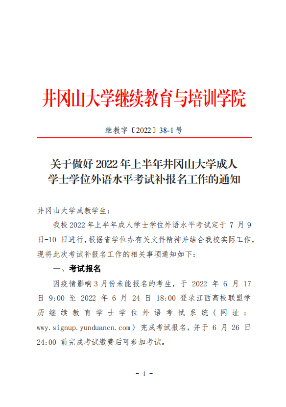 关于做好2022年上半年井冈山大学成人学生学位外语水平考试补报名工作的通知