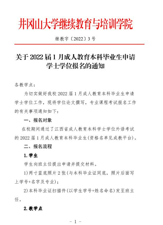 关于2022届1月成人教育本科毕业生申请学士学位报名的通知