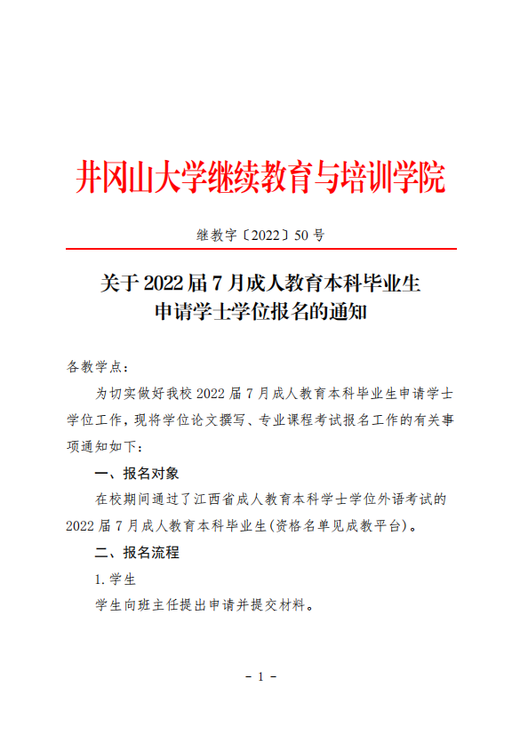关于2022届7月成人教育本科毕业生申请学士学位报名的通知
