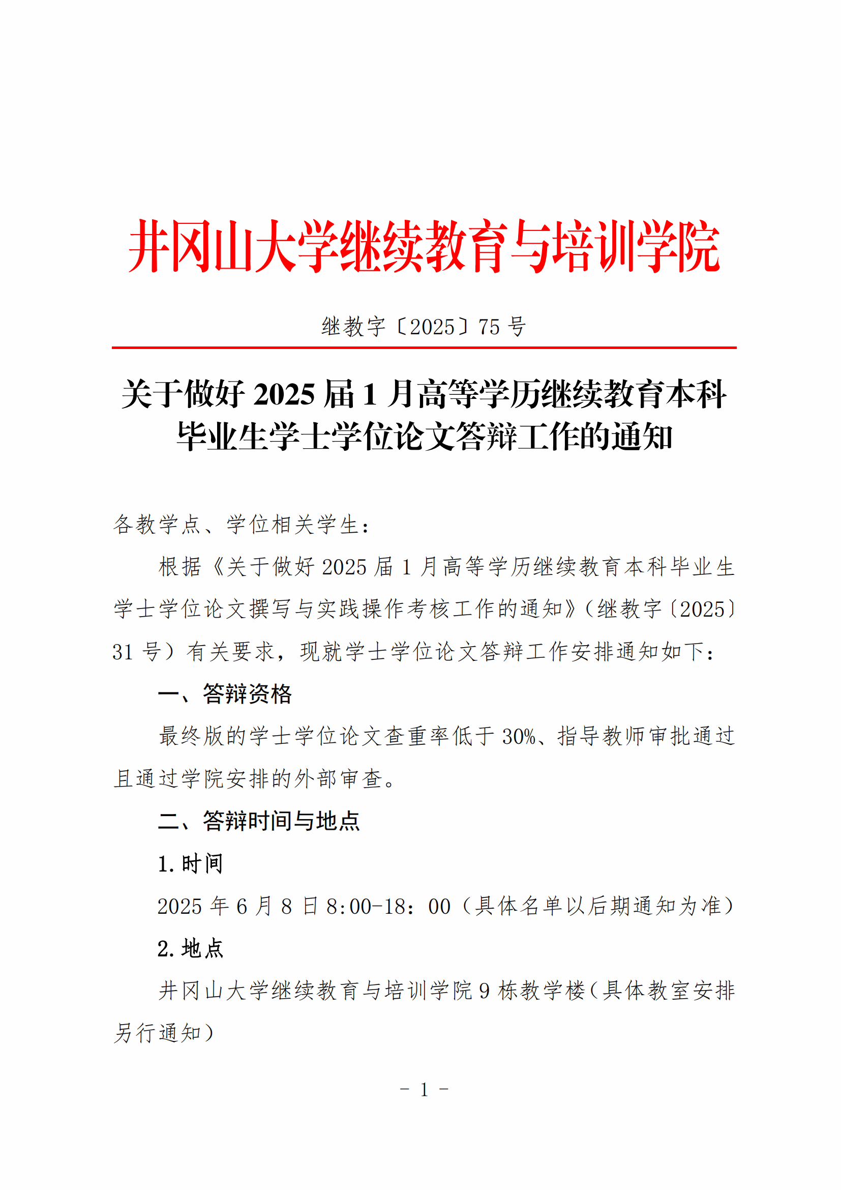 关于做好2025届1月高等学历继续教育本科毕业生学士学位论文答辩工作的通知