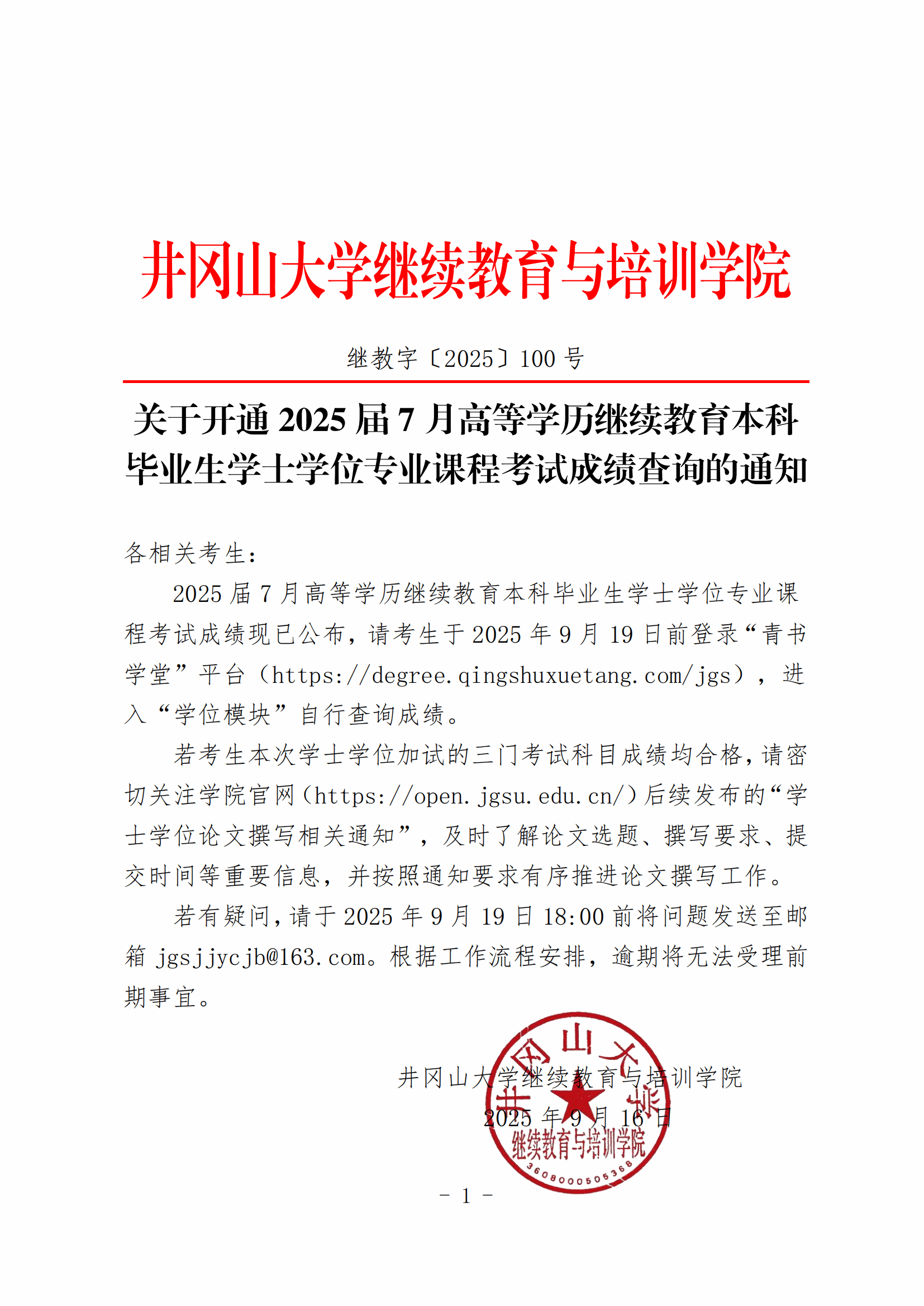 关于开通2025届7月高等学历继续教育本科毕业生学士学位专业课程考试成绩查询的通知