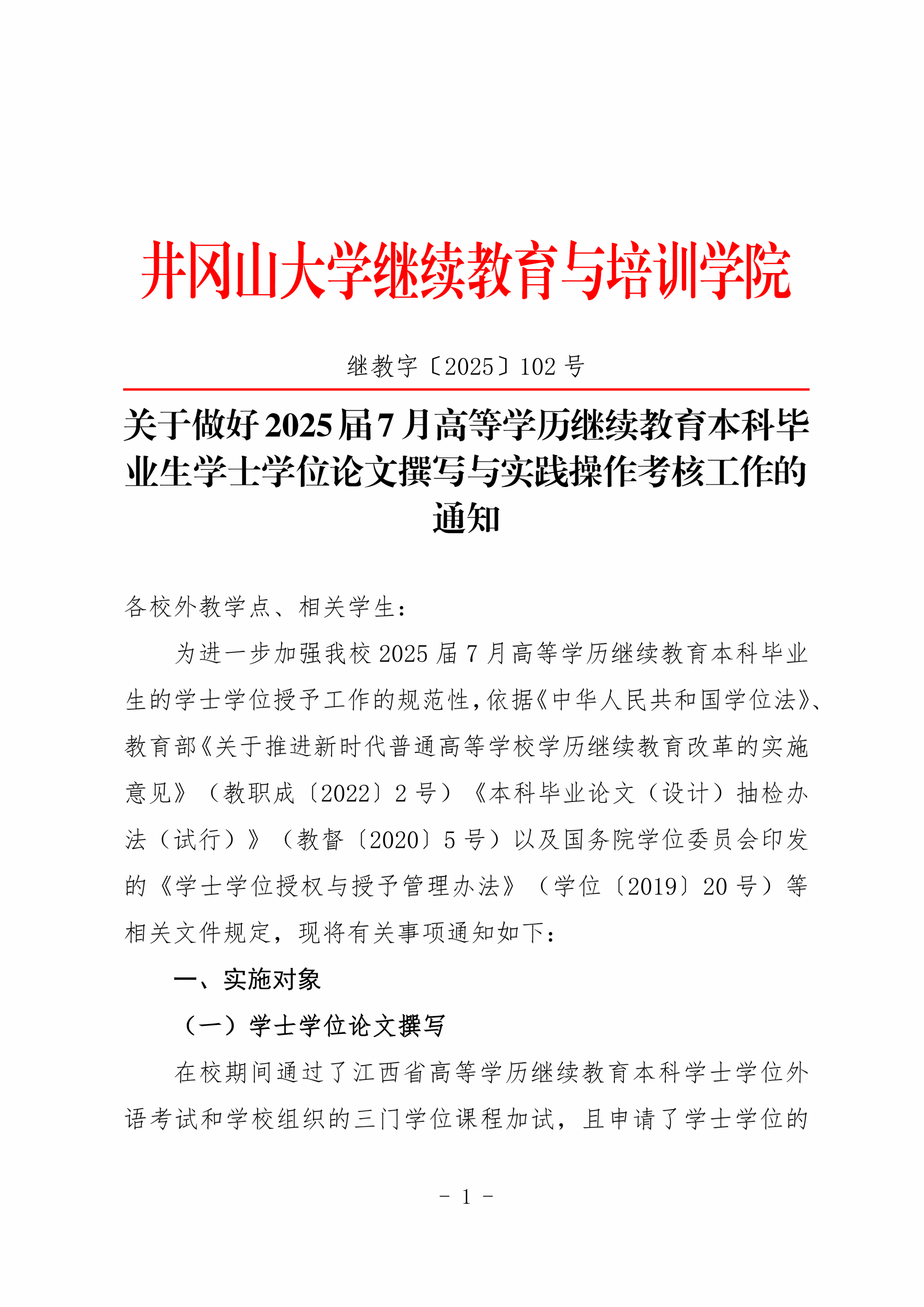 关于做好2025届7月高等学历继续教育本科毕业生学士学位论文撰写与实践操作考核工作的通知