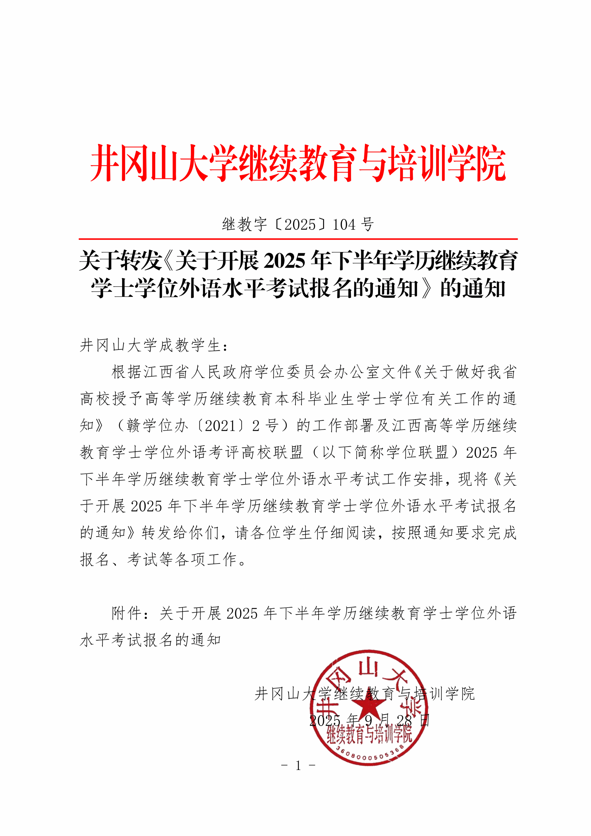 关于转发《关于开展2025年下半年学历继续教育学士学位外语水平考试报名的通知》的通知
