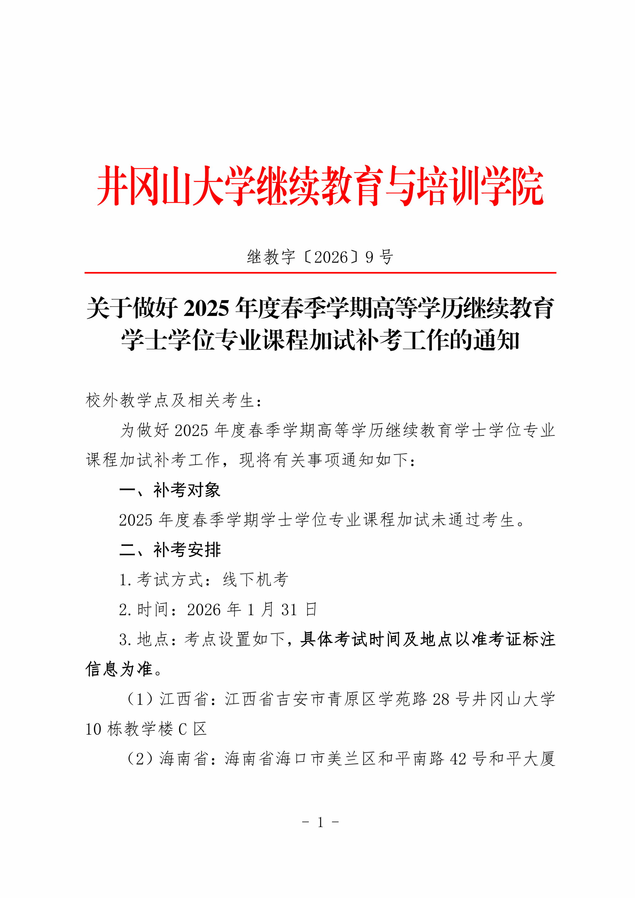 关于做好2025年度春季学期高等学历继续教育学士学位专业课程加试补考工作的通知