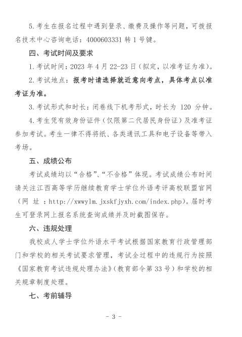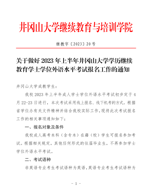 关于做好2023年上半年井冈山大学学历继续教育学士学位外语水平考试报名工作的通知