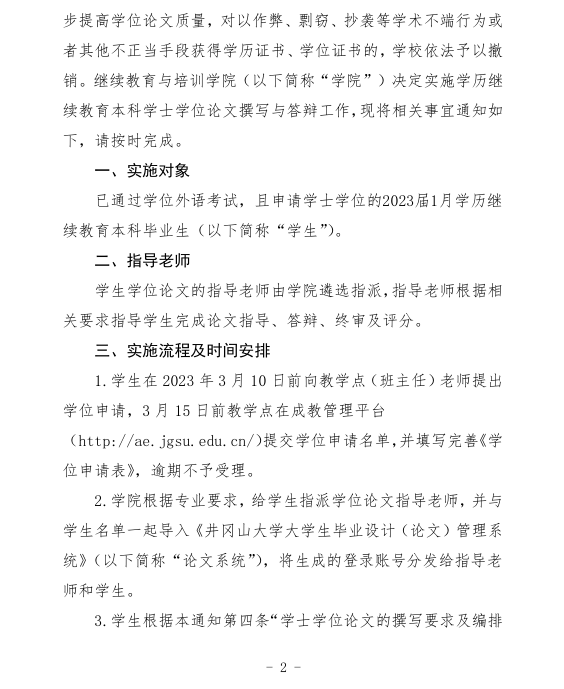 关于实施2023届1月学历继续教育本科毕业生学士学位论文撰写与答辩的通知