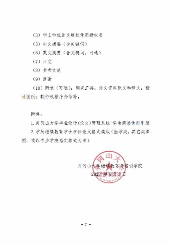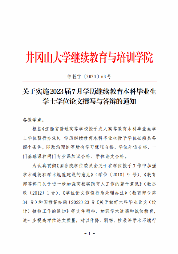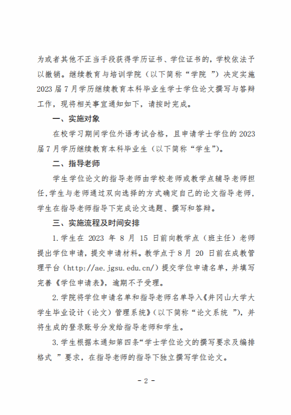 关于实施2023届7月学历继续教育本科毕业生学士学位论文撰写与答辩的通知