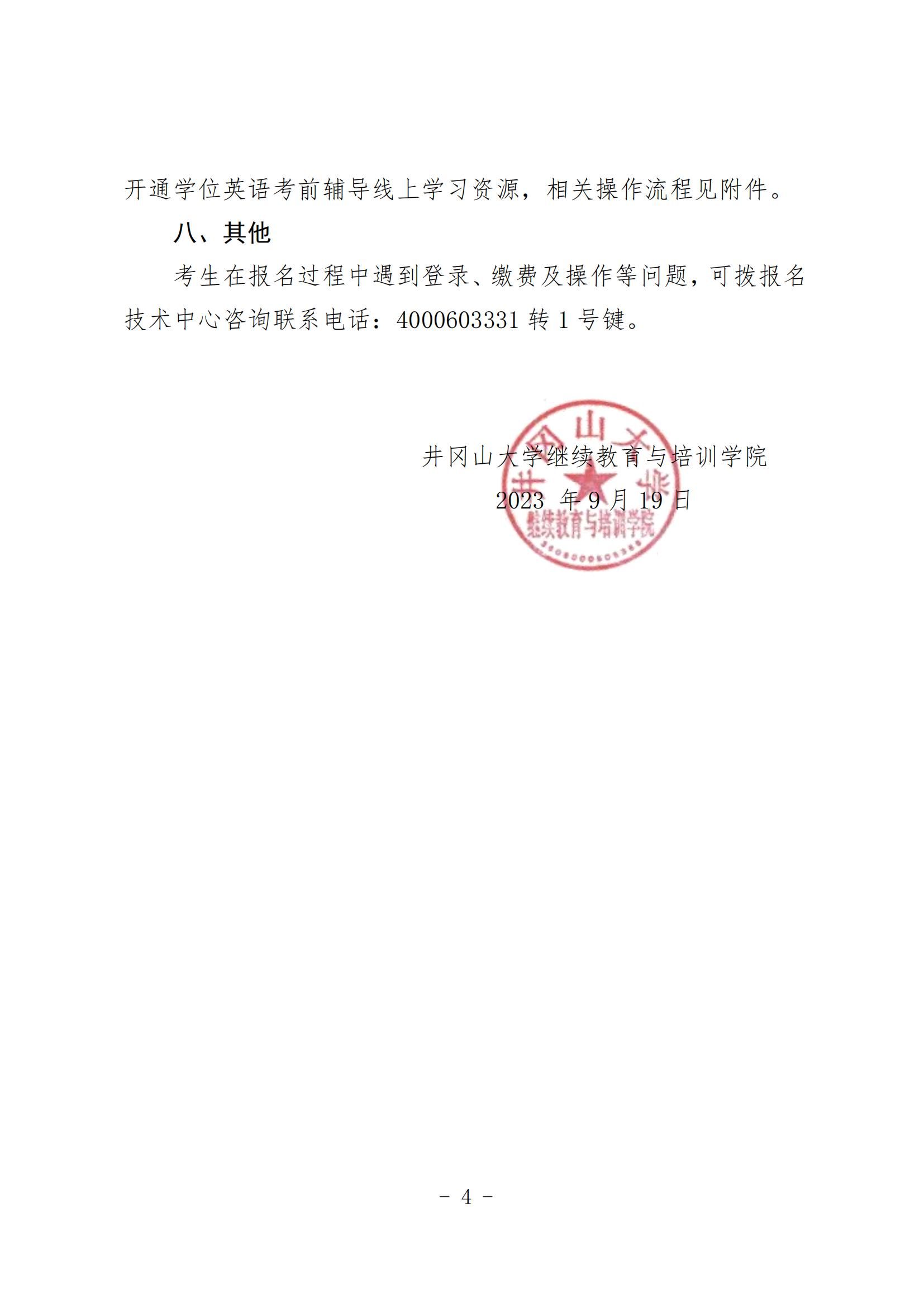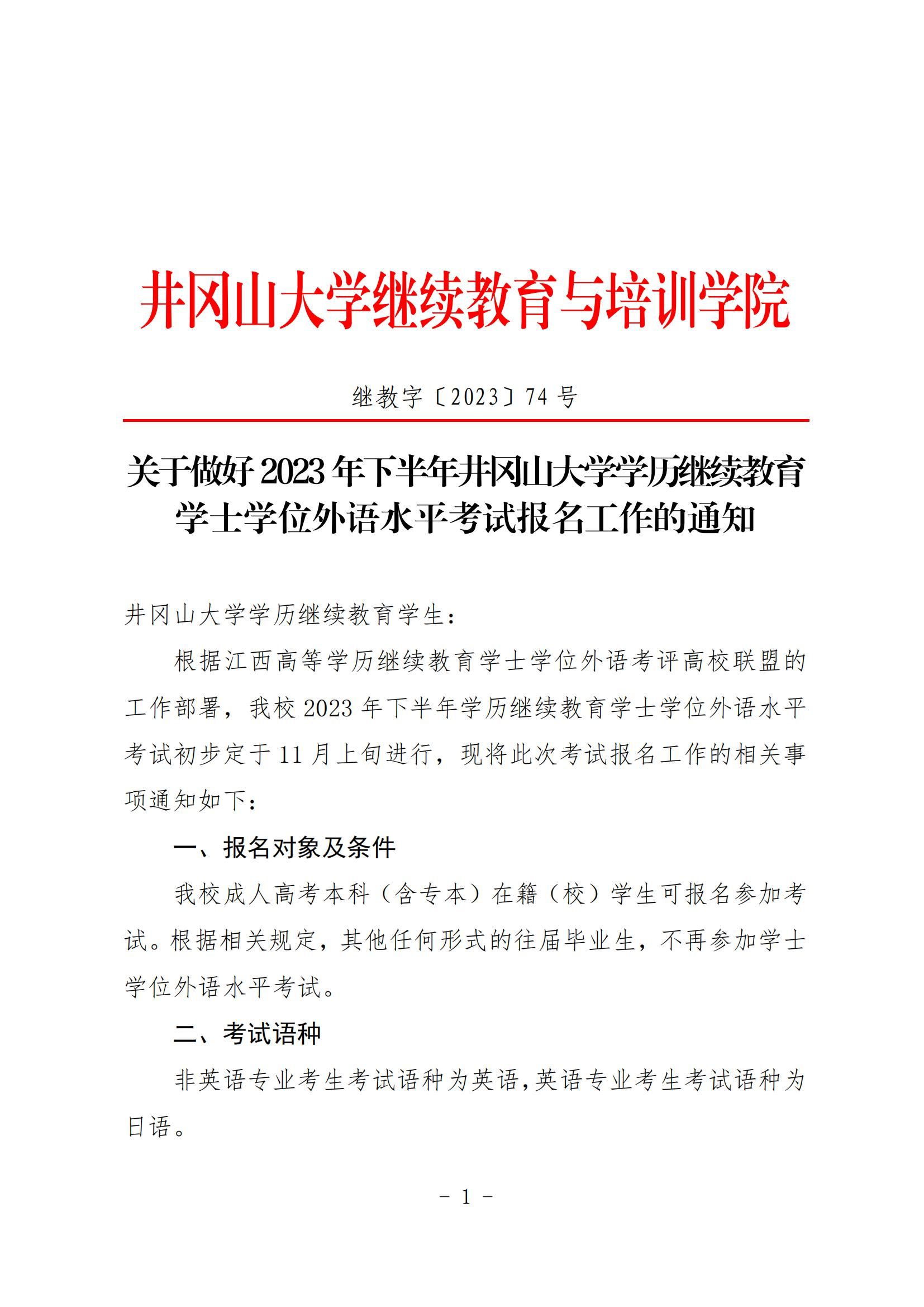 关于做好2023年下半年井冈山大学学历继续教育学士学位外语水平考试报名工作的通知