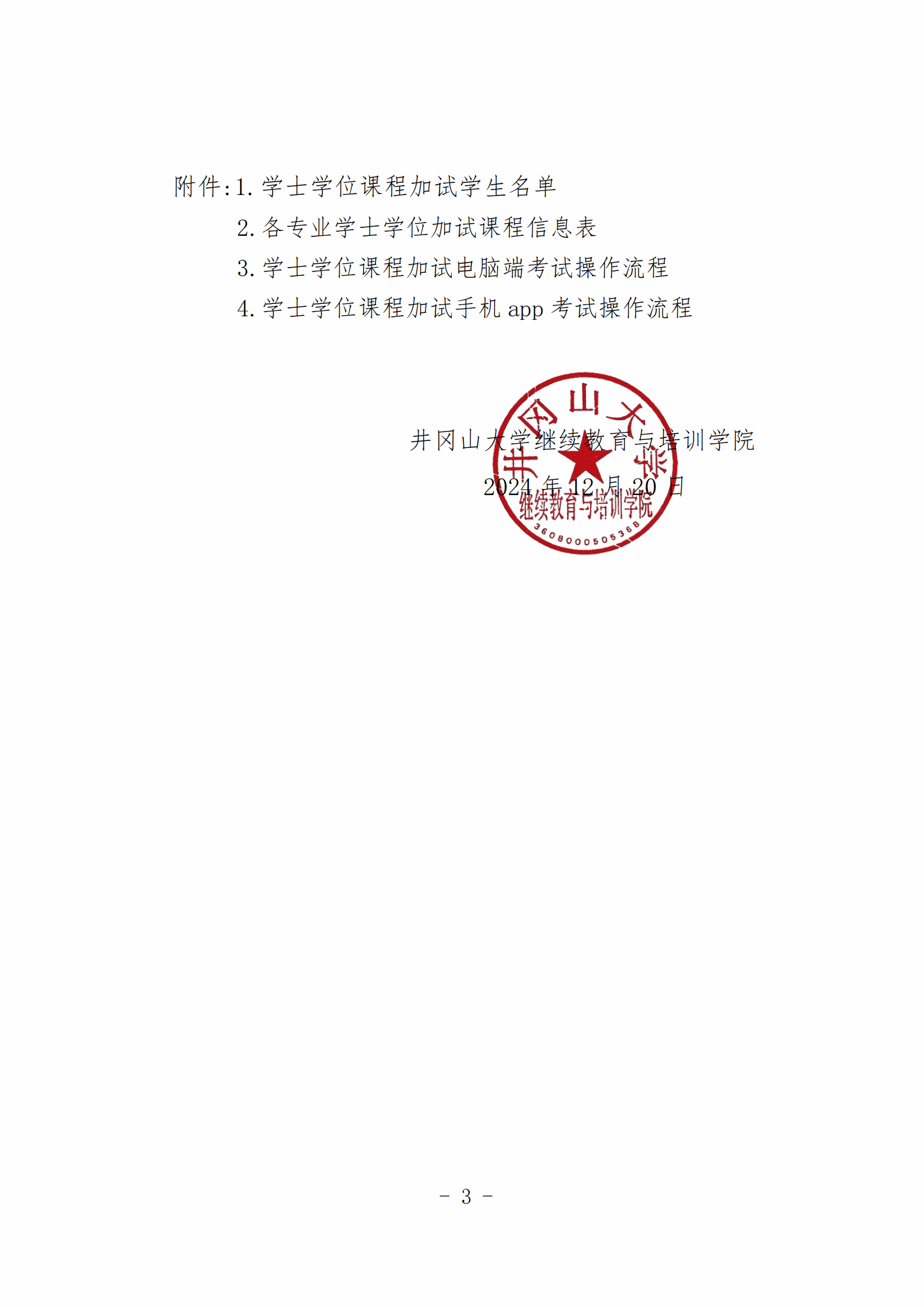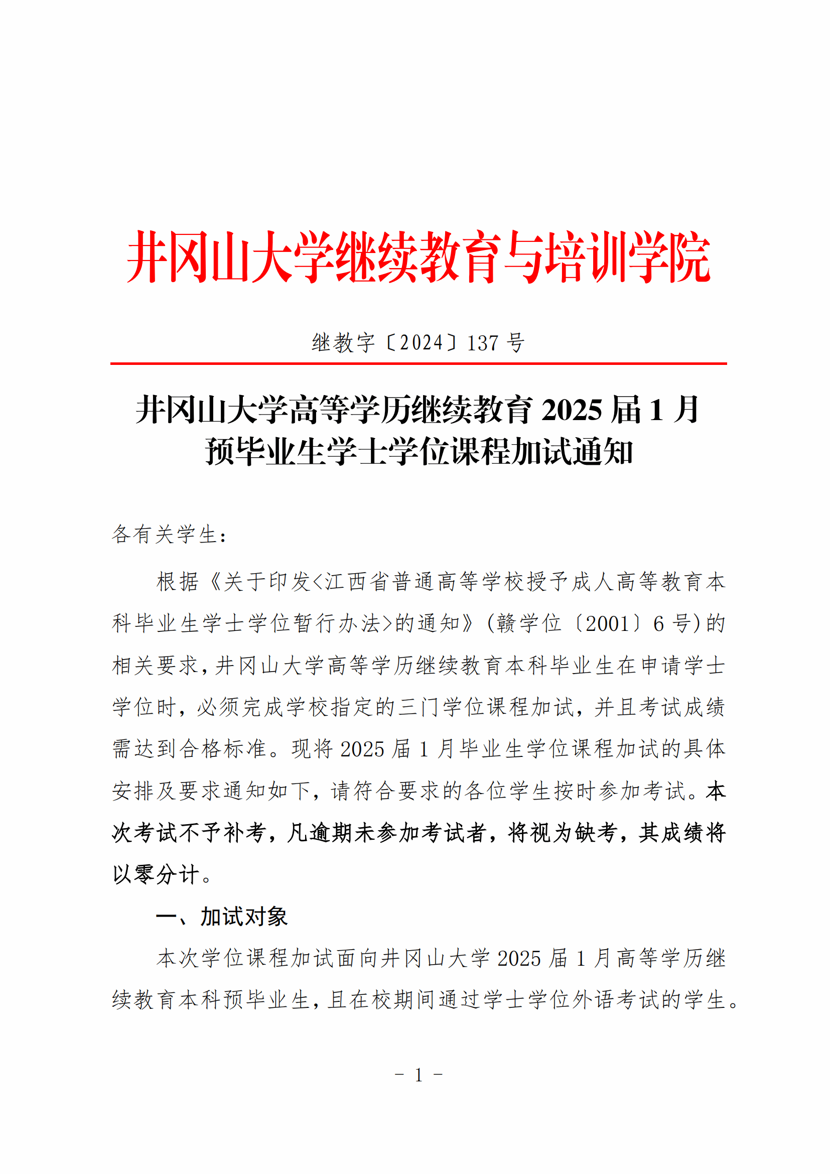 井冈山大学高等学历继续教育2025届1月预毕业生学士学位课程加试通知