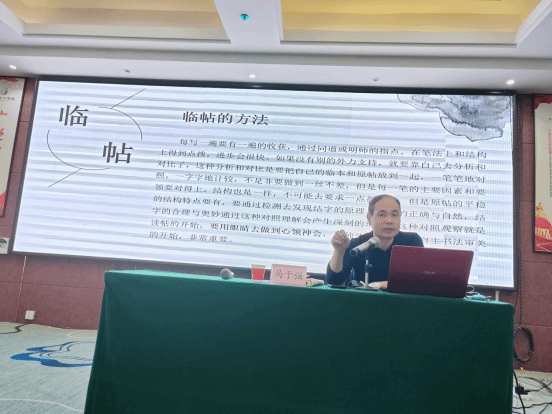 此次培训采取模块化课程设计,理论与实践相结合,通过专家讲座、教学示范、辅导答疑、交流研讨、现场教学等形式,共开设了书法基本知识学习要略、楷书知识、书法与绘画间的那些事、美术教育的多维教学体系、美术鉴赏与心理疗愈、素养导向的美术教学实践改革与案例研究等课程。培训时间自4月7日至4月22日结束,为期两周。