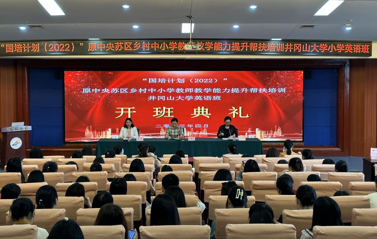 4月15日上午,“国培计划(2022)”--江西省原中央苏区乡村中小学教师教学能力提升帮扶培训班第六期英语班开班式在井冈山大学新学术交流中心举行。井冈山大学外国语学院刘素芳副院长、班主任许燕出席开班式,会议由井冈山大学外国语学院匡凤老师主持。