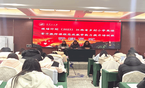 2023年12月21日,“国培计划(2023)”——江西省乡村骨干教师课程思政教学能力提升培训项目井冈山大学小学英语班顺利开班。井冈山大学外国语学院副院长林长洋出席,开班式由井冈山大学外国语学院许燕主持,全体学员参加了开班式。