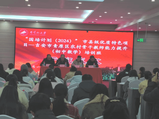2024年12月25日,“国培计划(2024)”—市县级优质特色项目吉安市青原区农村骨干教师能力提升(初中数学)培训班开班。青原区委教体工体委员总督学王克梅、井冈山大学数理学院副院长曾招云,井冈山大学数理学院专业负责人余涛博士,井冈山大学数理学院教师王志伟出席开班式。开班式由井冈山大学数理学院余涛博士主持。
