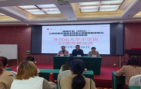 2023年3月26日上午,“国培计划(2022)”——江西省脱贫县乡村中小学教师教学能力提升帮扶培训项目井冈山大学小学语文1班开班仪式在仁达文化酒店五楼会议室举行。本次培训班的培训时间为3月25日至4月1日,为期8天。来自上饶广信区、九江修水县和吉安市万安县的学员参加培训。