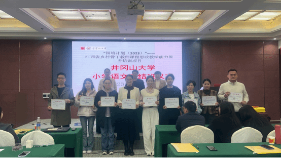 2023年12月8日,“国培计划(2023)”——江西省乡村骨干教师课程思政教学能力提升培训项目井冈山大学小学语文班集中学习阶段顺利结束。井冈山大学人文学院院长龚奎林出席结班仪式,结班仪式由班主任刘云兰主持,全体参训学员共同参与了结班式。