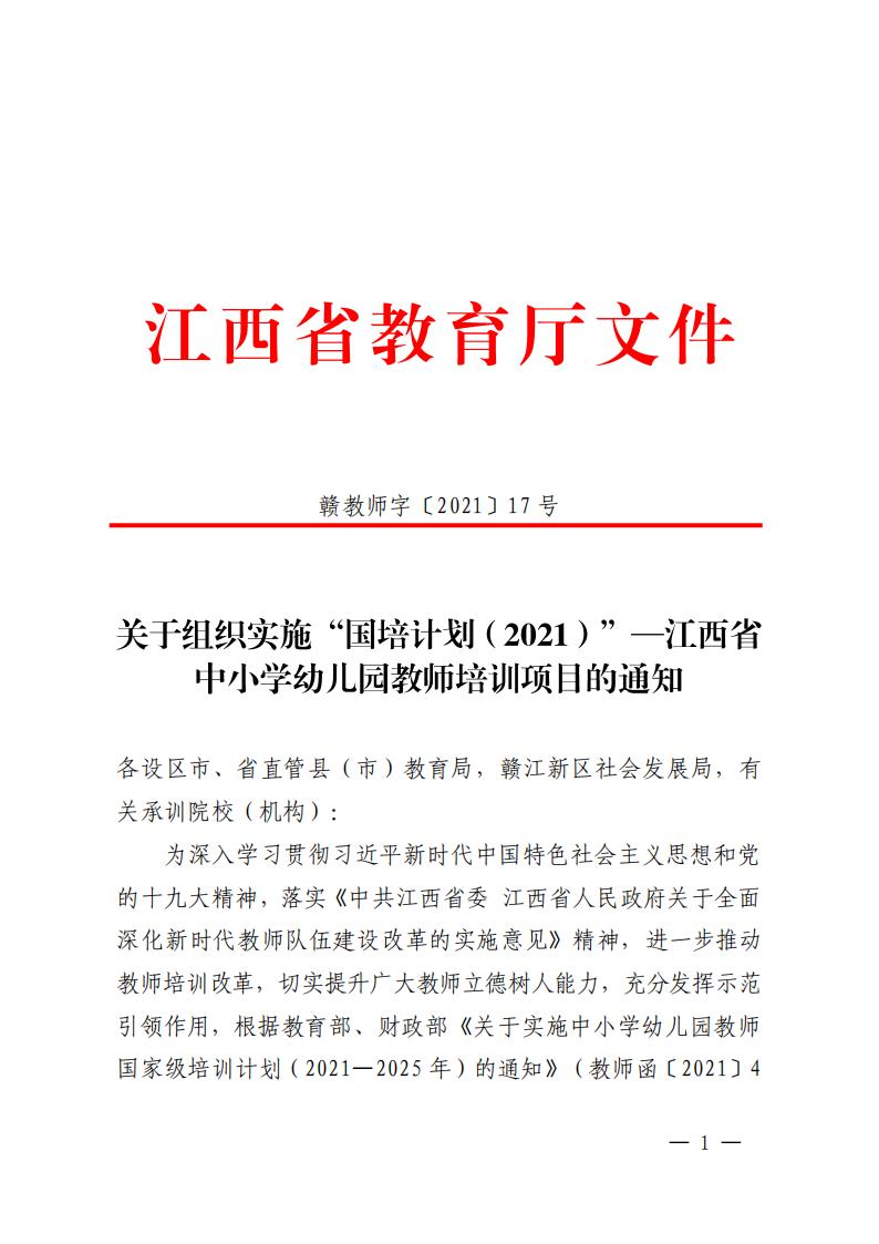 关于组织实施“国培计划(2021)”—江西省中小学幼儿园教师培训项目的通知