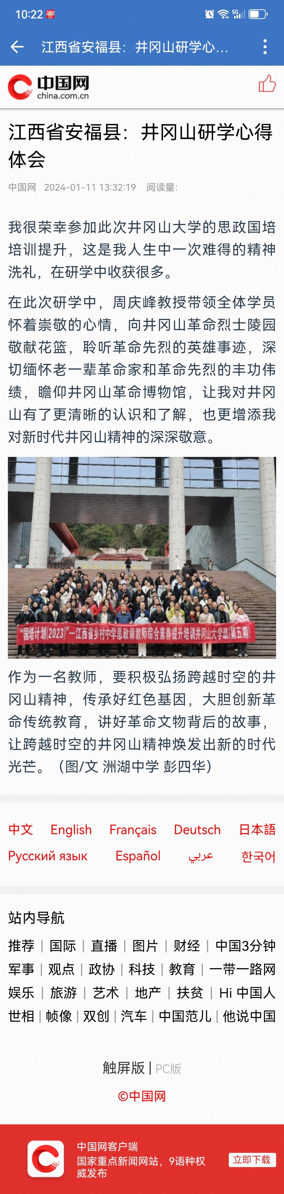 江西省安福县:井冈山研学心得体会