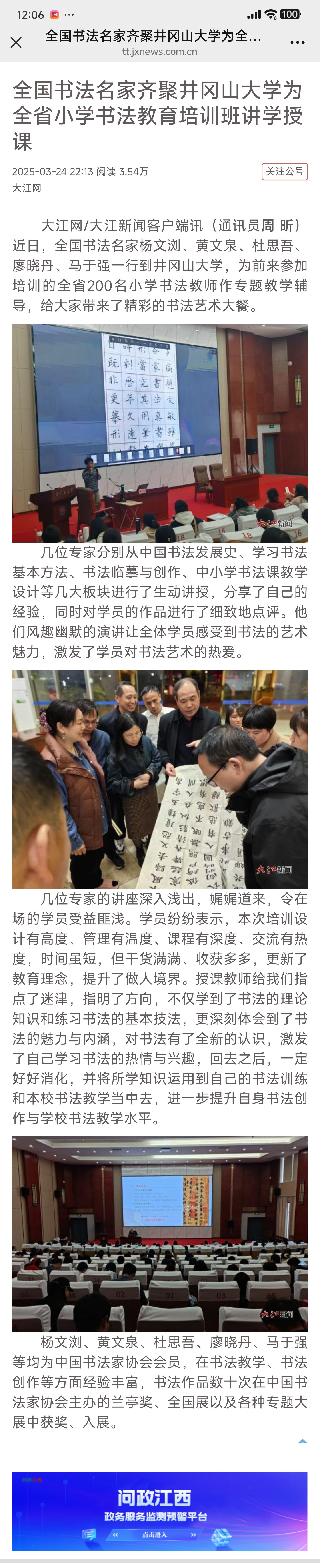 全国书法名家齐聚井冈山大学为全省小学书法教育培训班讲学授课