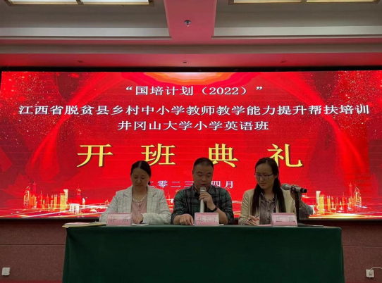 4月22日,“国培计划(2022)”—江西省脱贫县乡村中小学教师教学能力提升帮扶培训班第五期(小学英语班)举行开班仪式。井冈山大学外国语学院副院长林长洋、培训班班主任许燕老师出席开班式,来自吉安、上饶、九江三个地区的82名小学英语教师参加了此次活动。