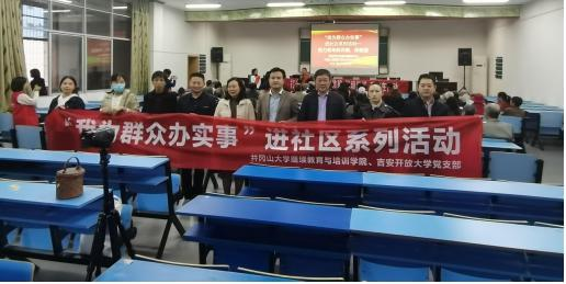 为扎实推进党史学习教育,引导广大党员坚定理想信念,加强党性锤炼,多办聚民心暖人心强信心筑同心的实事。2021年10月20日下午,继续教育与培训学院(吉安开放大学)党支部以吉安市社区教育指导中心为平台,联合中国人民银行吉安市中心支行,为友谊社区居民和校离退休老干部开展了“携手进社区,助力老年防诈骗、保健康"主题活动。活动由党支部书记王志民同志主持。