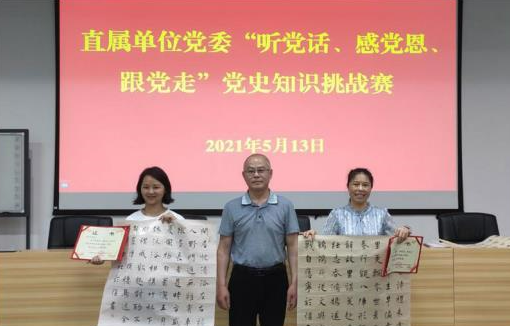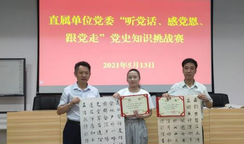 为扎实开展党史学习教育,直属单位党委以党史知识竞赛为抓手,全面掀起“四史”学习新热潮,切实引导广大党员干部学党史、知党恩、跟党走,进一步做到学史明理、学史增信、学史崇德、学史力行,2021年5月13日下午,举行了“学党史、知党恩、跟党走”知识挑战赛。我院左丁丁、梁平珠、肖贻滨和朱榕晖老师代表学院参加了比赛,并荣获佳绩。